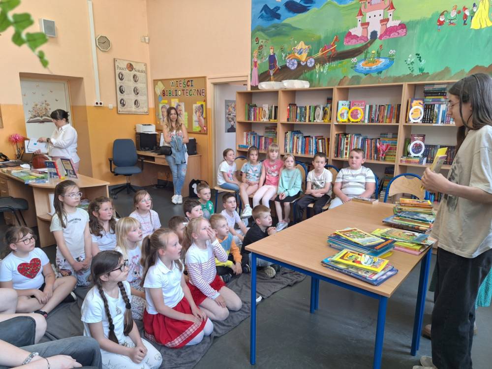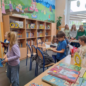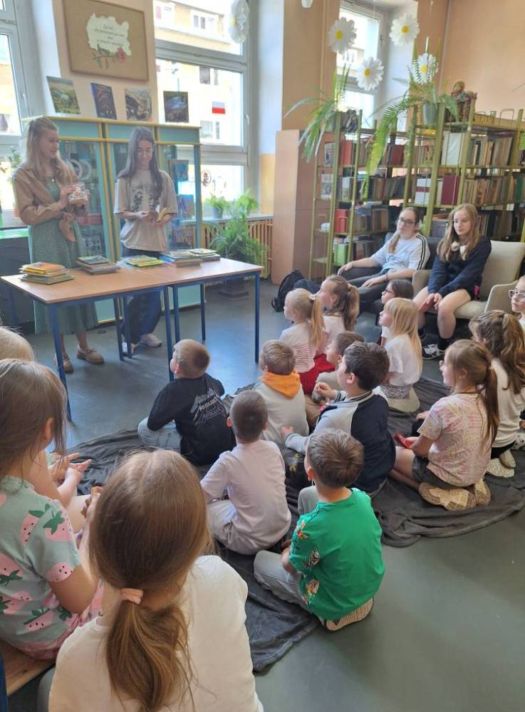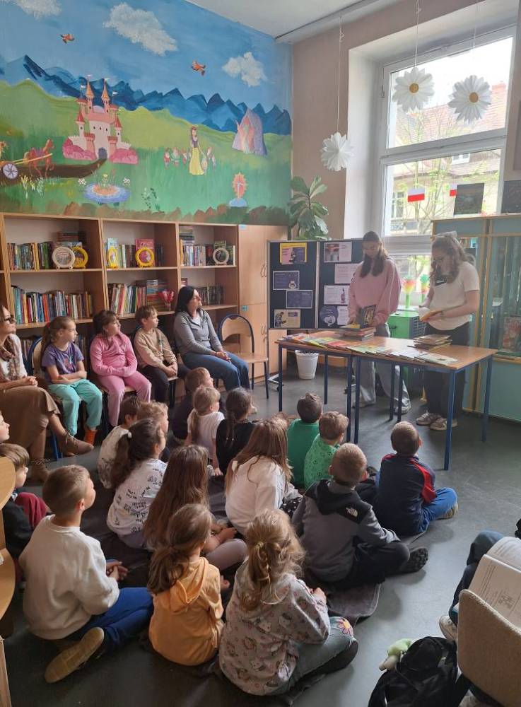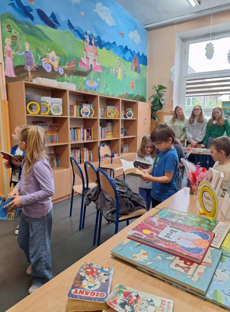 Przedstawiciele klas 7a i 8a opowiadali pierwszoklasistom o ich ukochanych książkach z dzieciństwa. Dzięki bezpośredniemu kontaktowi niegdyś niezwykle popularne serie ponownie znalazły swoich amatorów. Po spotkaniu wszystkie dzieci zabrały do domu ciekawą lekturę.