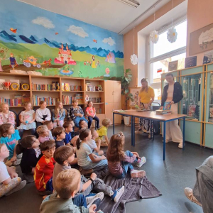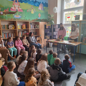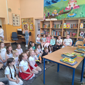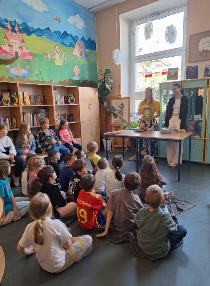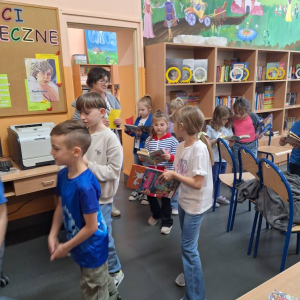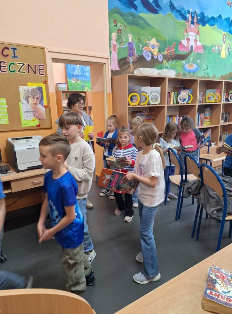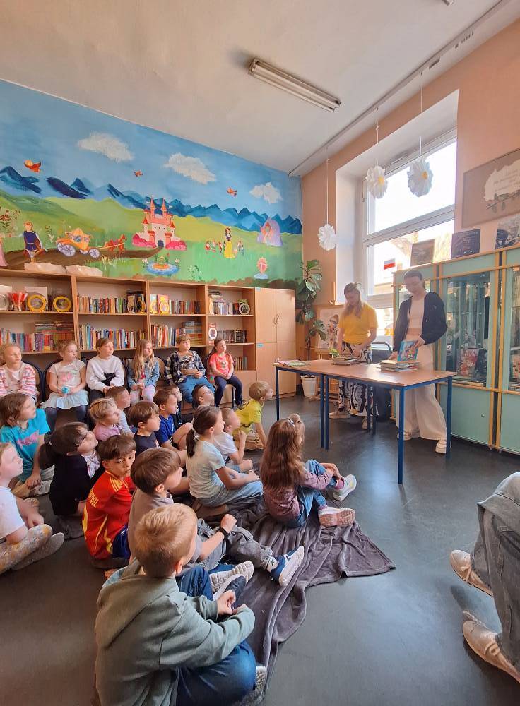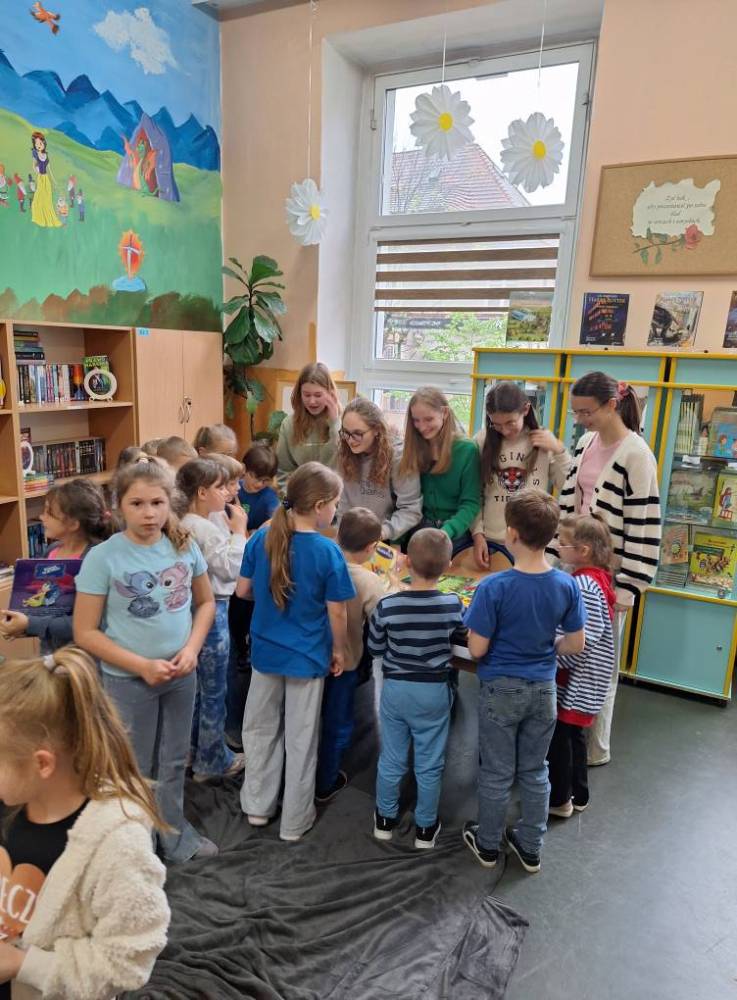 Przedstawiciele klas 7a i 8a opowiadali pierwszoklasistom o ich ukochanych książkach z dzieciństwa. Dzięki bezpośredniemu kontaktowi niegdyś niezwykle popularne serie ponownie znalazły swoich amatorów. Po spotkaniu wszystkie dzieci zabrały do domu ciekawą lekturę.