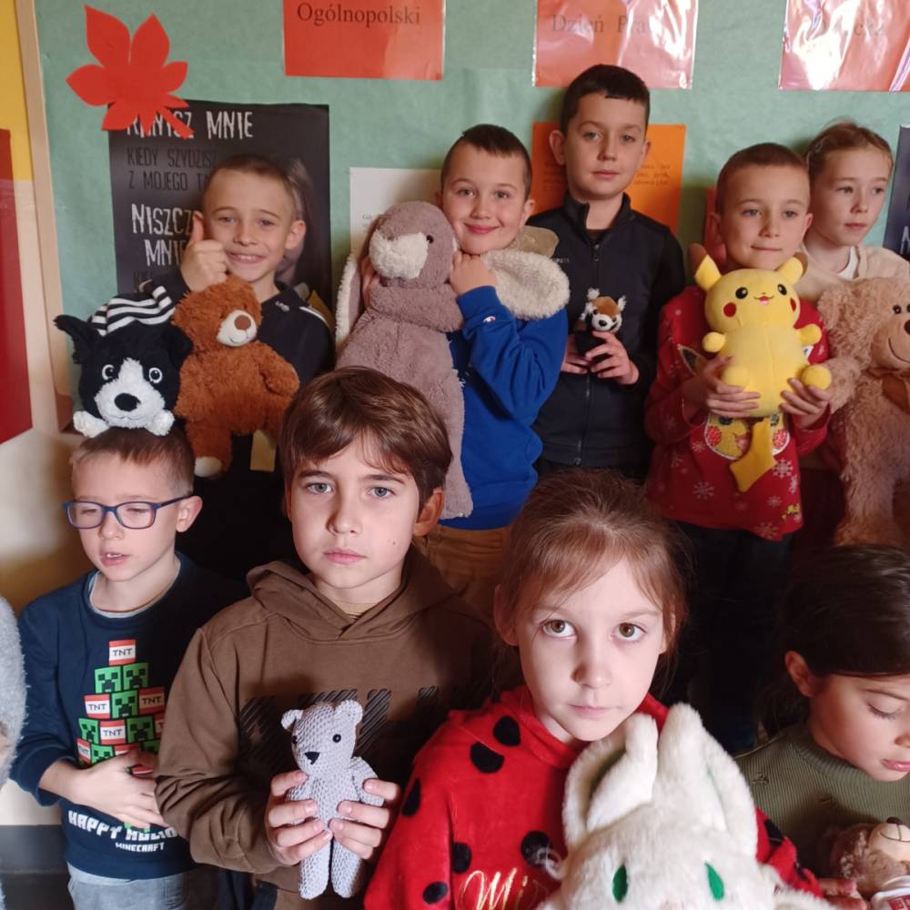 Wszyscy słyszeli o Uszatku, Coralgolu czy Kubusiu Puchatku - choć postacie te diametralnie różniły się od siebie, to łączyła ich jedna cecha - każda z nich była misiem. 25 listopada przypada Dzień Pluszowego Misia ustanowiony w setną rocznicę powstania tej zabawki. W szkolnych wyznaniach wspierały naszych uczniów ich ulubione maskotki. Przytulanki dodawały odwagi przy kartkówkach, pomagały w zdobywaniu wiedzy i wywoływały radość na dziecięcych twarzach. A klasy, w których misiowa frekwencja była najwyższa uzyskały zwycięskie punkty w całorocznym konkursie "Klasa na medal".