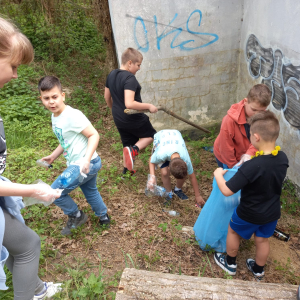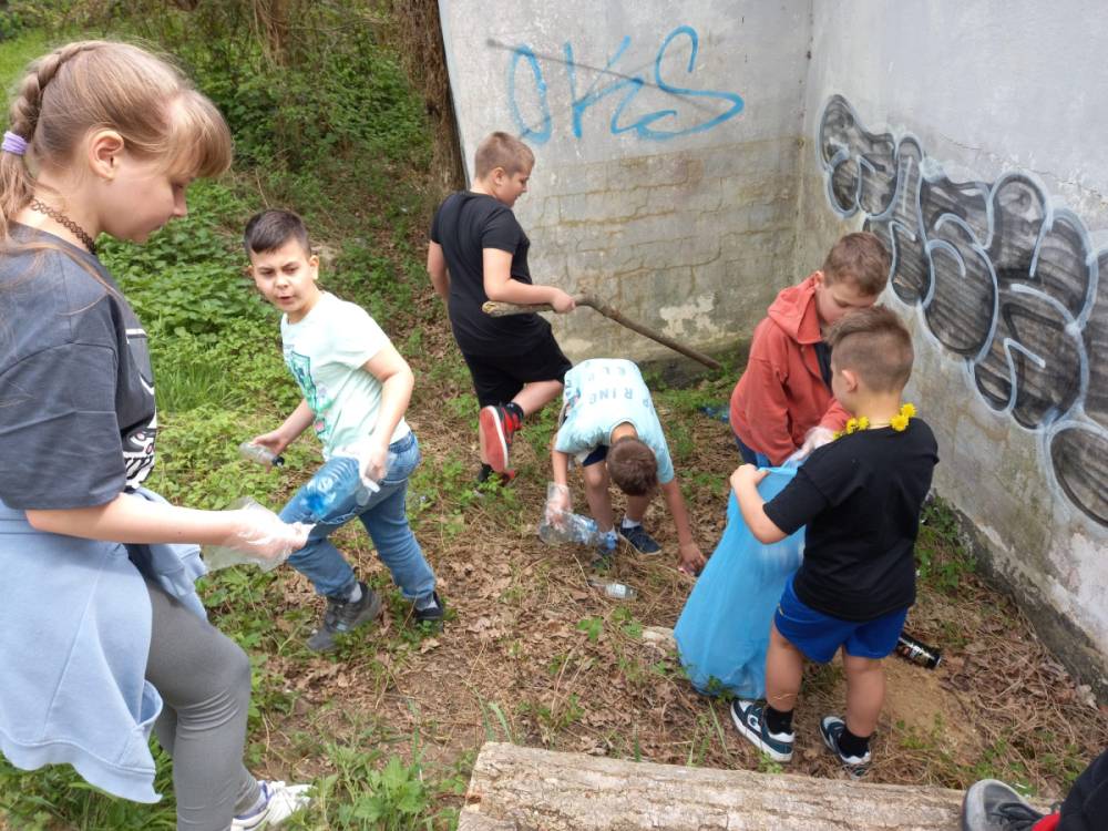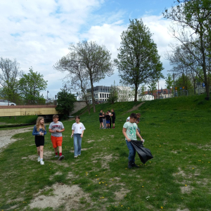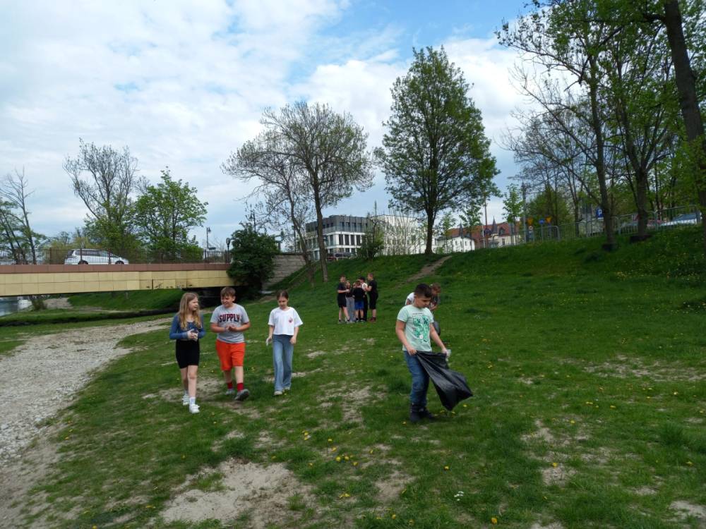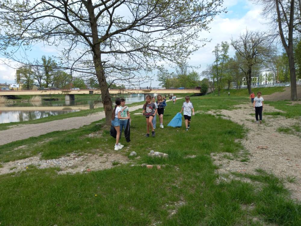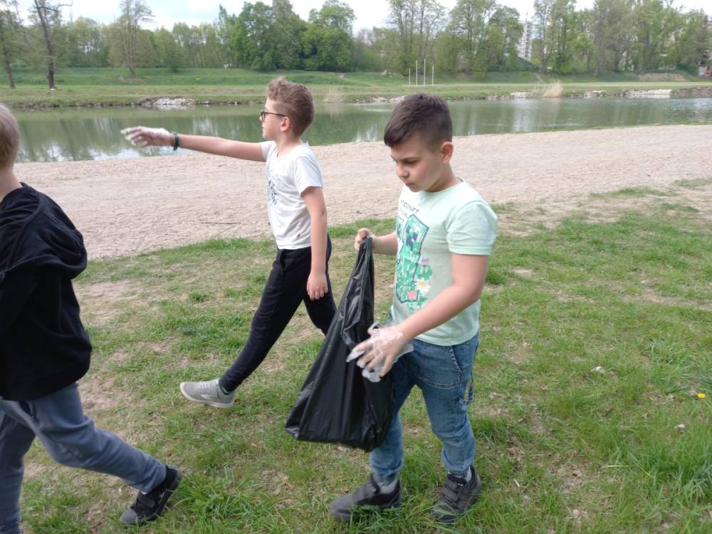 Z okazji Dnia Ziemi uczniowie klasy 3c wraz z wychowawczynią wyruszyli nad rzekę przepływającą przez nasze miasto, aby posprzątać pas zieleni. Każde dziecko otrzymało rękawiczki ochronne oraz worek na śmieci do którego trafiły papierki, plastikowe butelki, puszki i inne odpady. Byliśmy zaskoczeni, jak dużo śmieci można znaleźć w miejscach, które służą do relaksu, uprawiania sportu i codziennych spacerów.