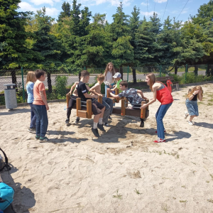 Słoneczna pogoda i nadciągający wielkimi krokami wakacyjny czas sprzyja wyprawom integracyjnym. Wcale nie trzeba wysokich kosztów, ani dalekich okolic, by doskonale się bawić. Udowodnili to uczniowie klasy Va. Nad Jeziorem Nyskim piątoklasiści podziwiali pejzaż, a wsłuchując się w szum fal rekreacyjnie spędzali czas na pobliskiej plaży.
