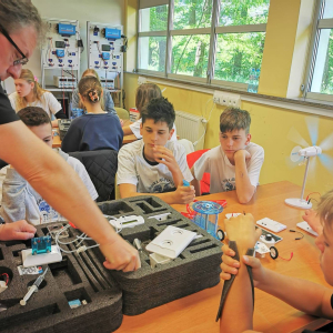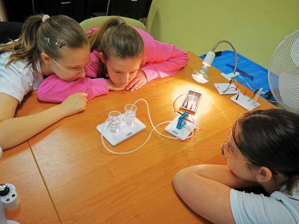 Dzieci aktywnie uczestniczyły w eksperymentach i ćwiczeniach praktycznych. Uczyły się, jak działają różne typy turbin – wiatrowe i wodne – oraz w jaki sposób mogą one produkować energię elektryczną. Największym zainteresowaniem cieszyła się część warsztatowa, podczas której uczniowie samodzielnie wytwarzali wodór, a następnie wykorzystywali go do uruchomienia miniaturowego pojazdu zasilanego tym paliwem.