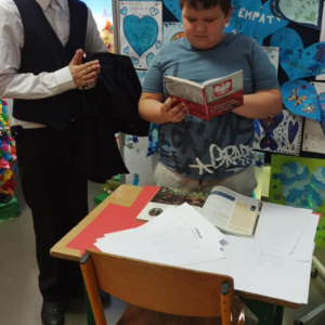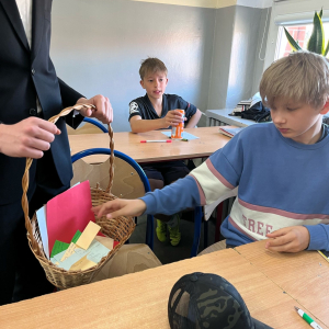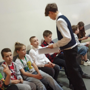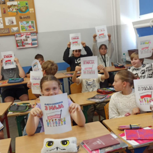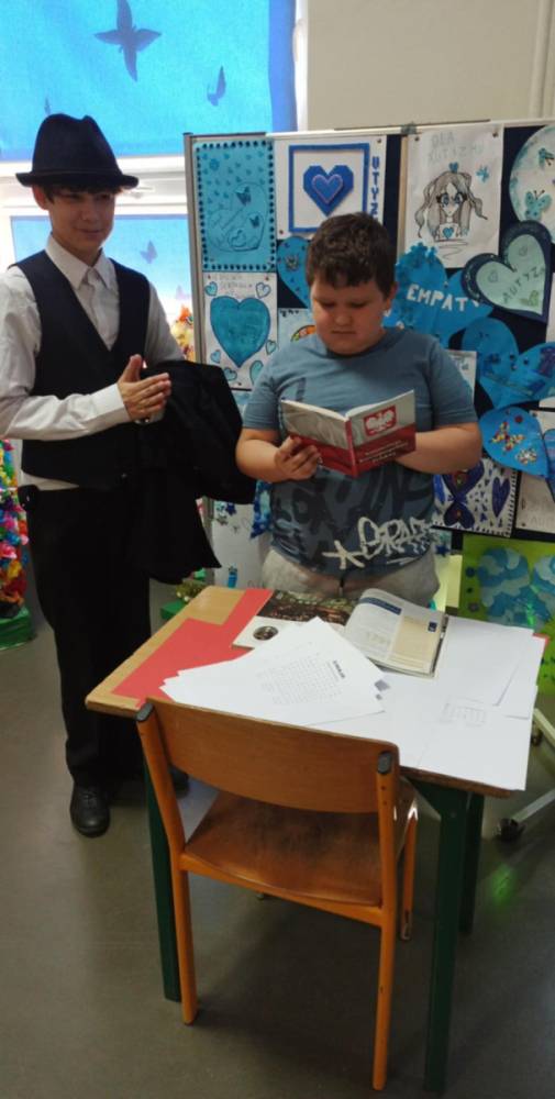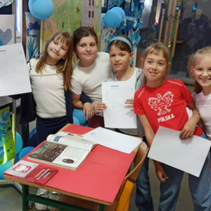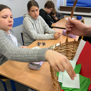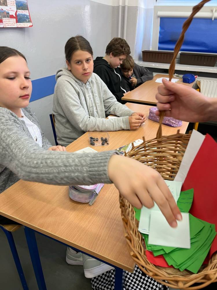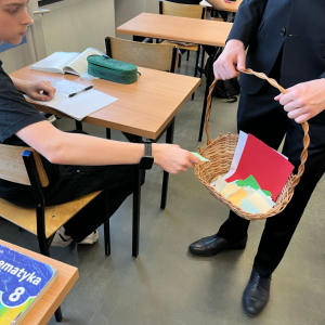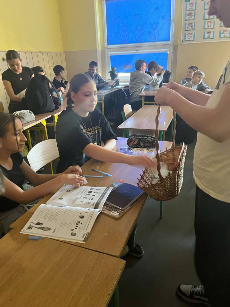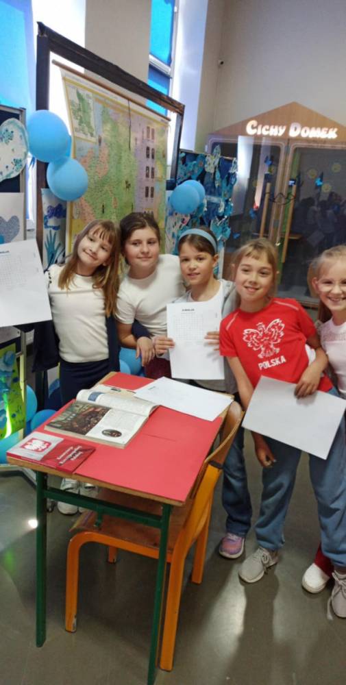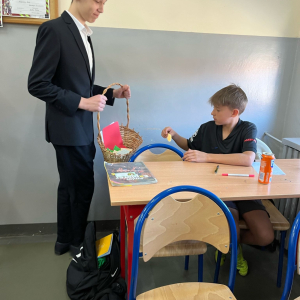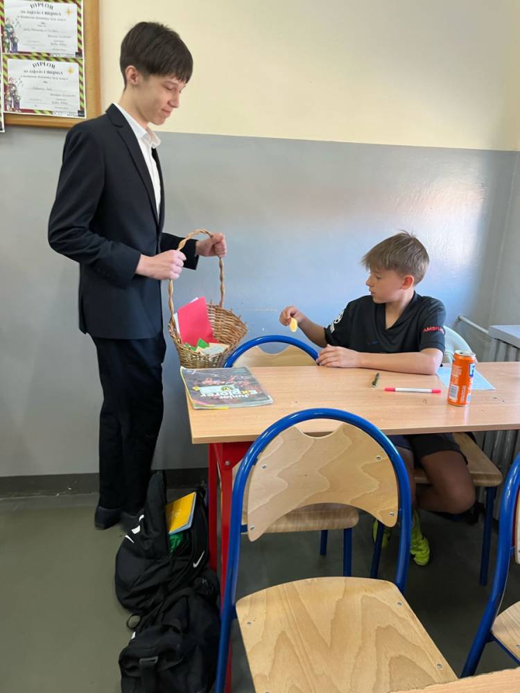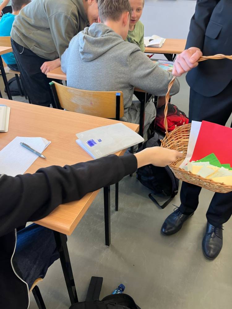 Uczniowie klas starszych wzięli udział w konkursie "Co wiesz o Konstytucji Trzeciego Maja? ". Za wykazanie się wiedzą zostali oni nagrodzeni drobnymi biało-czerwonymi i słodkimi upominkami. Dobrą zabawę całej społeczności szkolnej gwarantowały również "Patriotyczne przerwy", w trakcie których obejrzeć można było na holu I piętra wystawę dotyczącą genezy świąt majowych, specjalnie przygotowane animacje wyświetlane na "kinowym ekranie". Chętni zmierzyć się mogli z tematycznymi wykreślankami, a mali artyści - swój talent doskonalili poprzez kolorowanki.