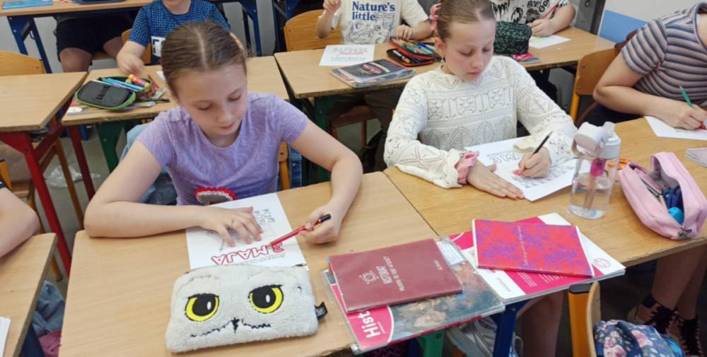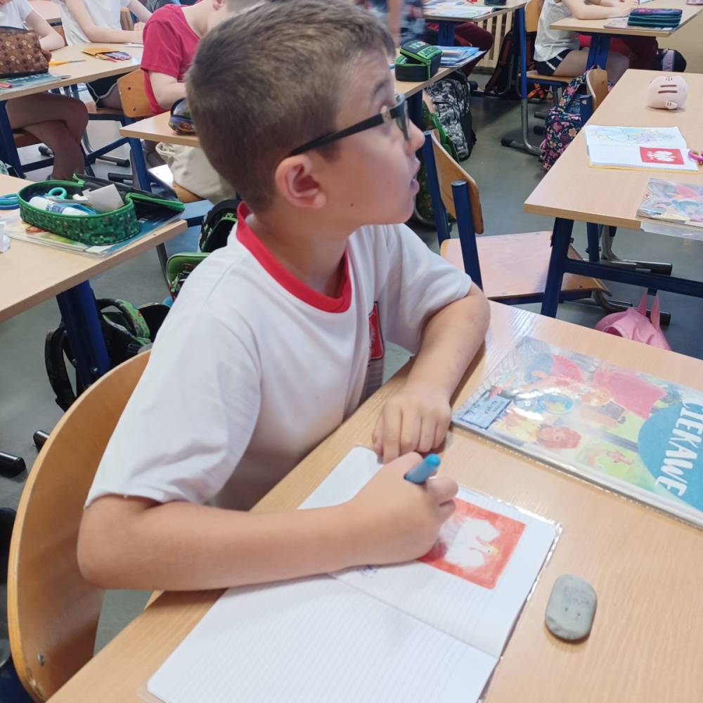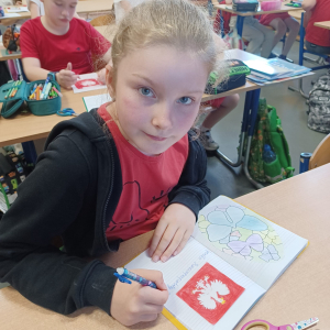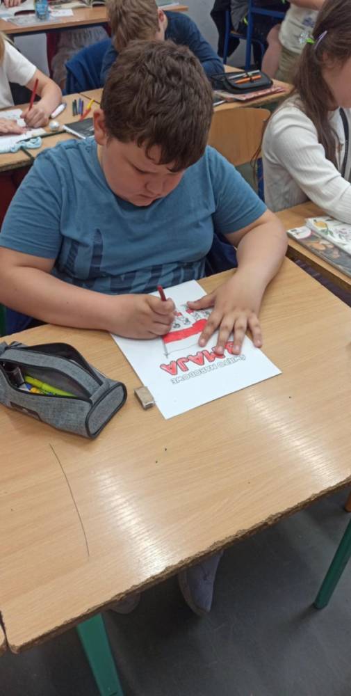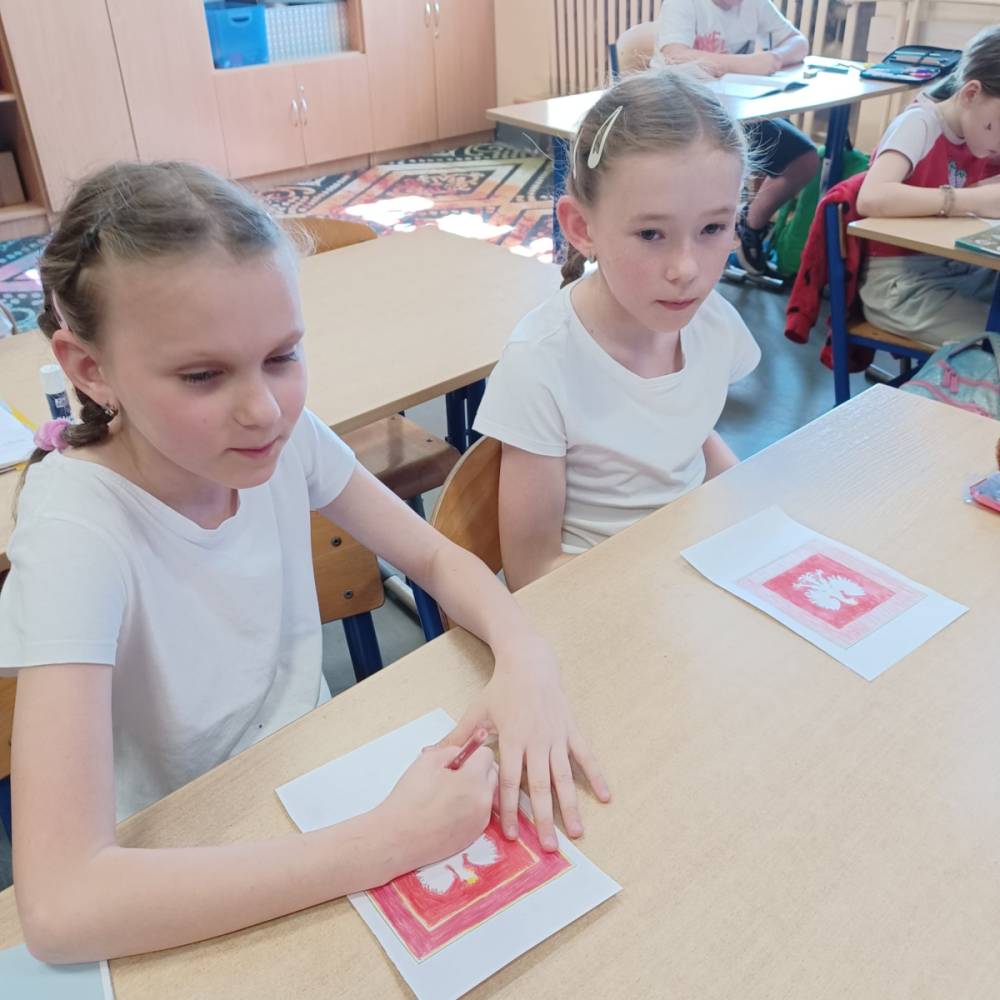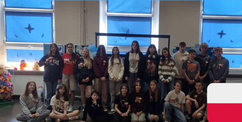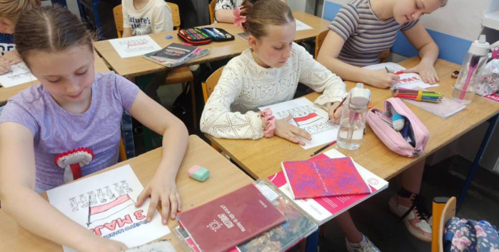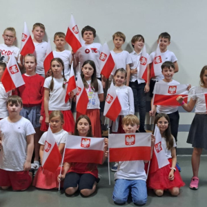 Społeczność szkolna majowe świętowanie rozpoczęła od wspólnego przystrojenia na biało-czerwono szkolnych przestrzeni i promowania postaw patriotycznych - poprzez poezję, wykonywanie papierowych flag, prac plastycznych. Ważnym elementem stał się kotylion i ubiór w barwach narodowych. A śpiewany "Mazurek Trzeciego Maja" rozbrzmiewał ze wszystkich sal lekcyjnych.