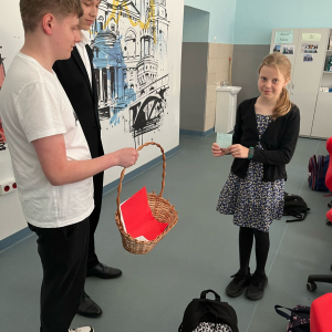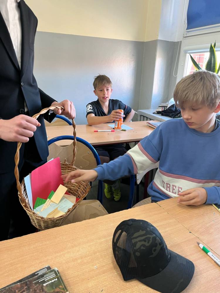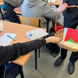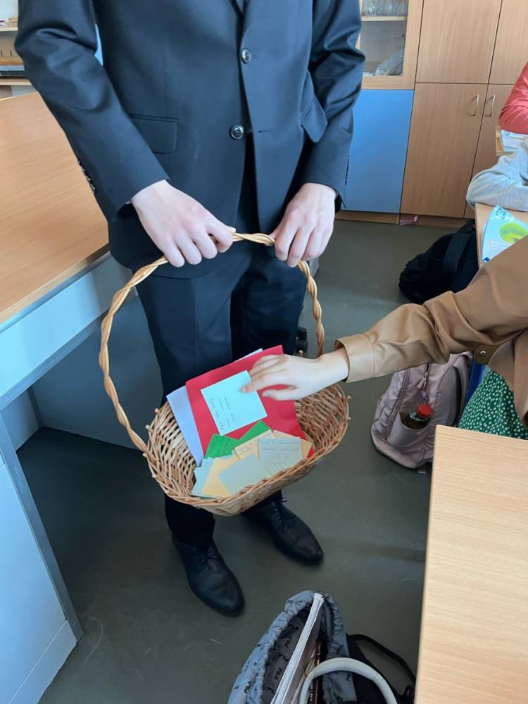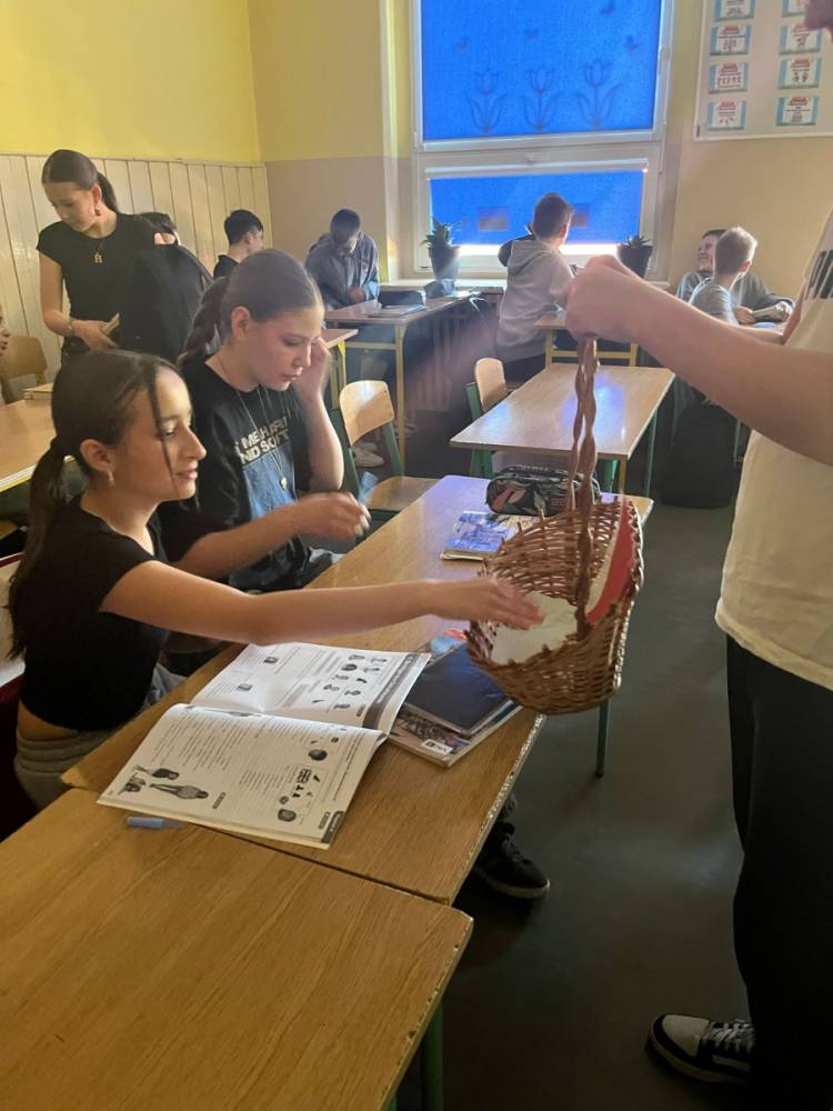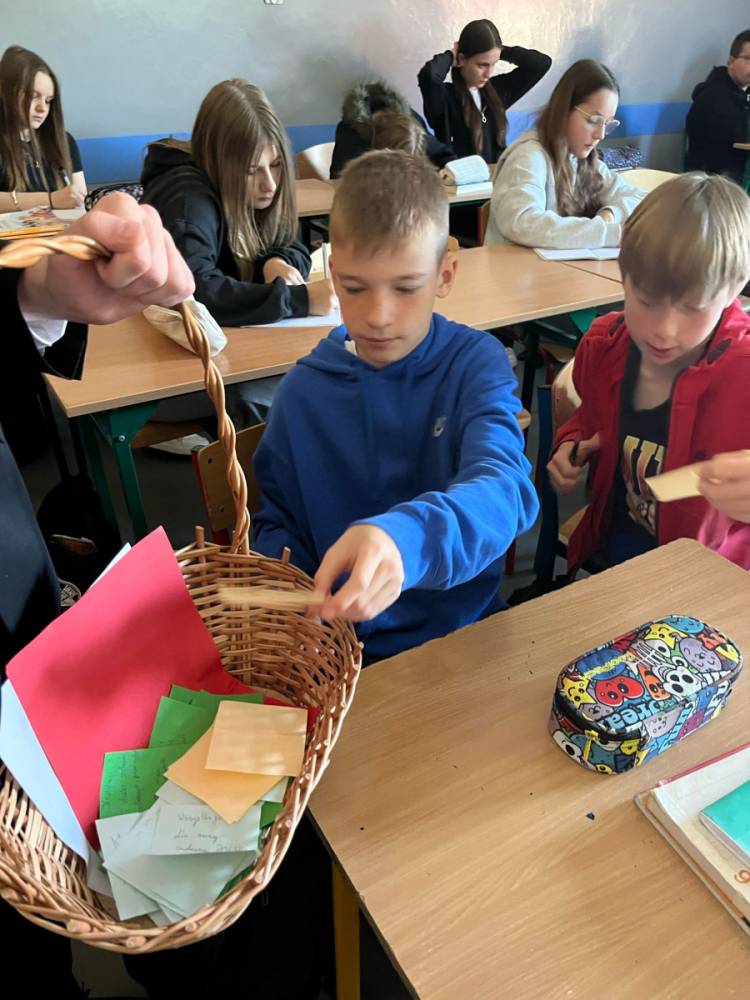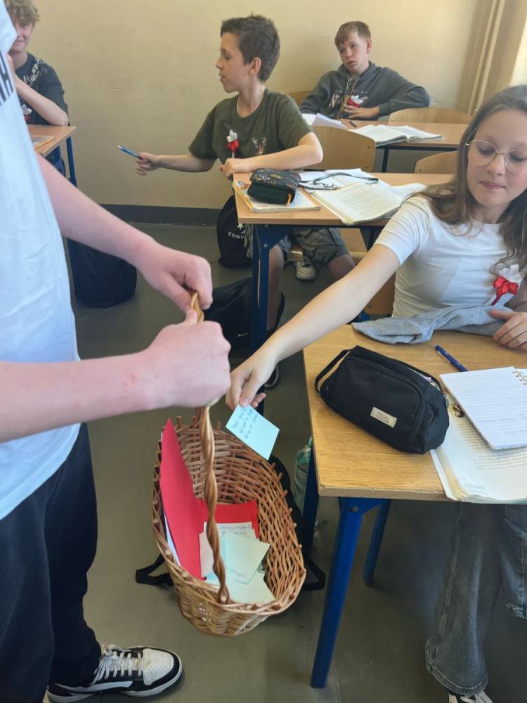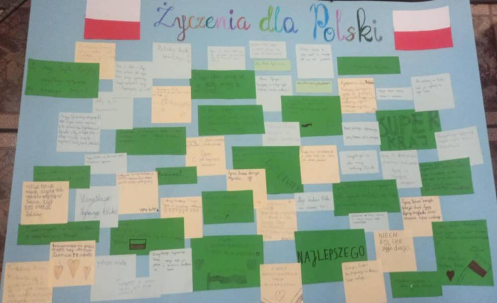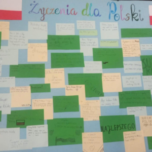 Czego młodzi ludzie przy okazji świąt majowych chcą życzyć Ojczyźnie? Majowe Gołąbki, w których roli doskonale sprawdzili się ósmoklasiści, zbierały spisane przez społeczność szkolną myśli, z których następnie powstał plakat. Życzenia dotyczyły głównie: wolności, dobrych obywateli, pokoju, uczciwości, niezależności, braku katastrof, a także zawierały wyrazy szacunku czy więzi patriotycznej z krajem.