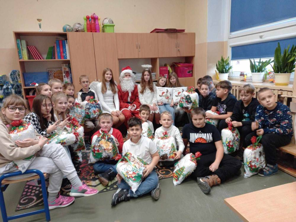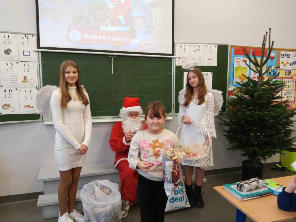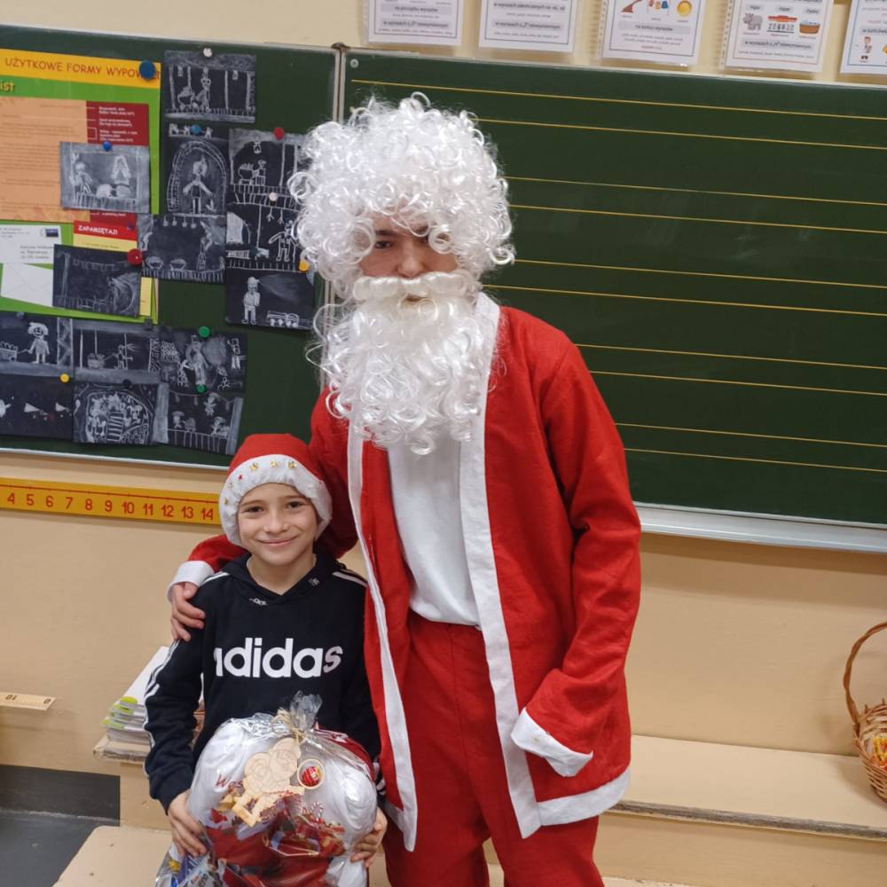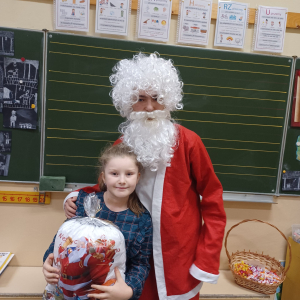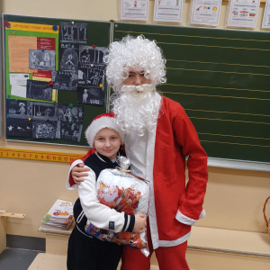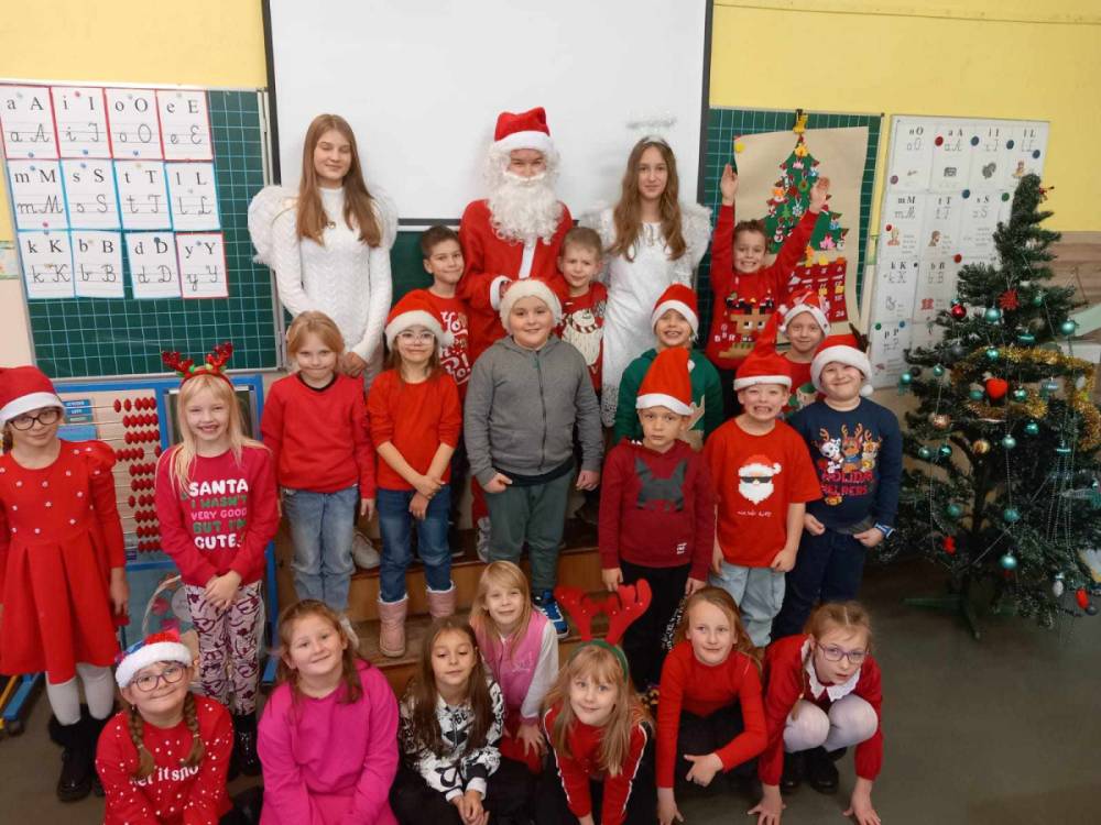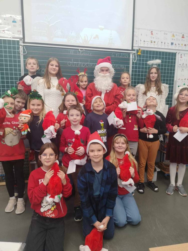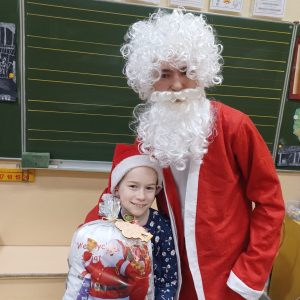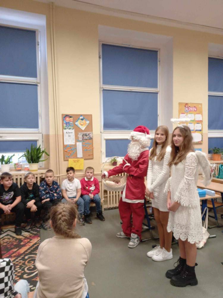 Szóstego grudnia, choć ani śladu białego puchu za oknem, to i tak zapanował zimowy, odświętny nastrój. Wszyscy w tym roku byli grzeczni, więc z niecierpliwością oczekiwano przybycia wyjątkowego Gościa - św. Mikołaja, który w towarzystwie Śnieżynek-Aniołków wręczał uczniom podarunki. Symbolicznych rózg ze sobą nie przywiózł, gdyż nie było takiej konieczności. Nie zabrakło za to wspólnych, pamiątkowych zdjęć oraz cukierków.
