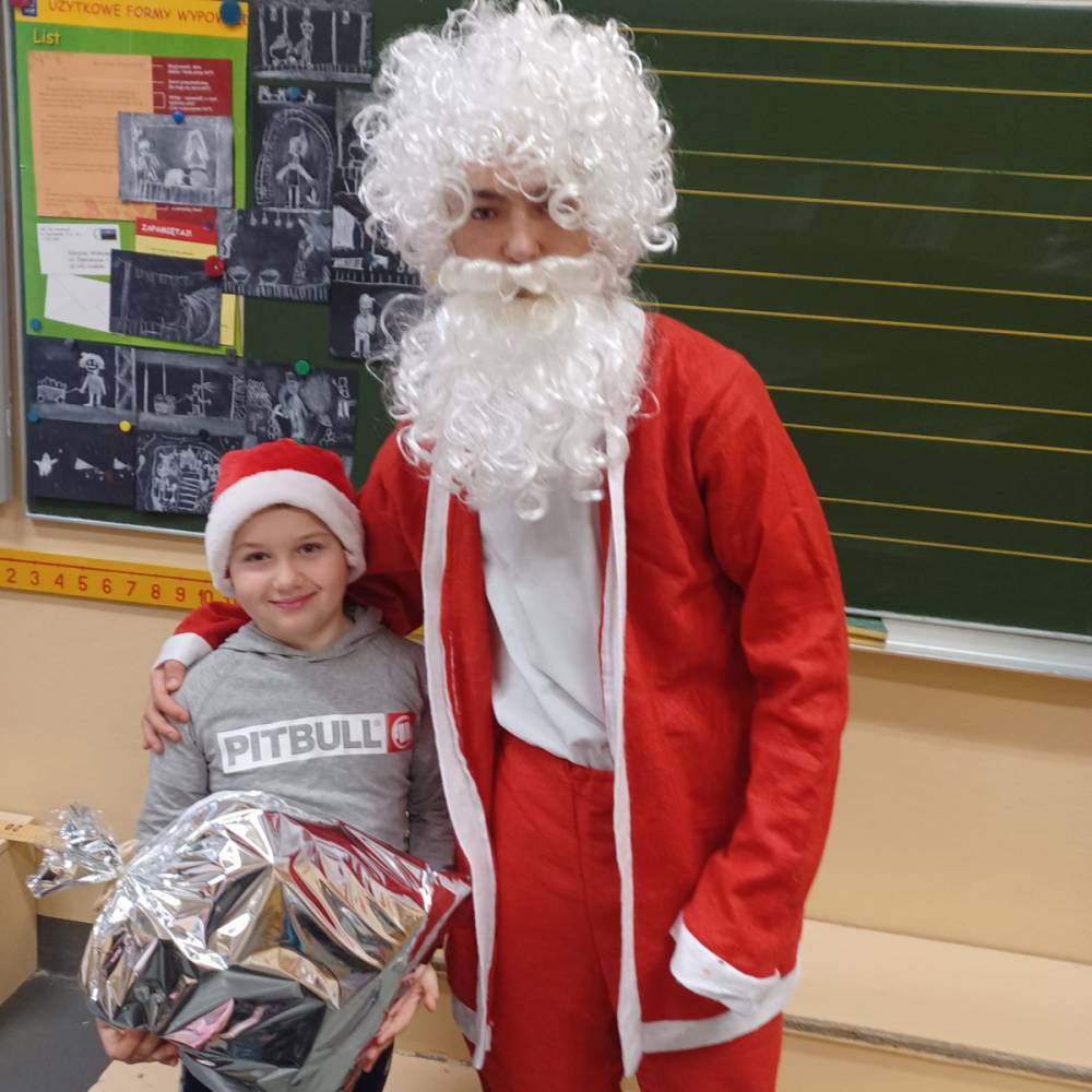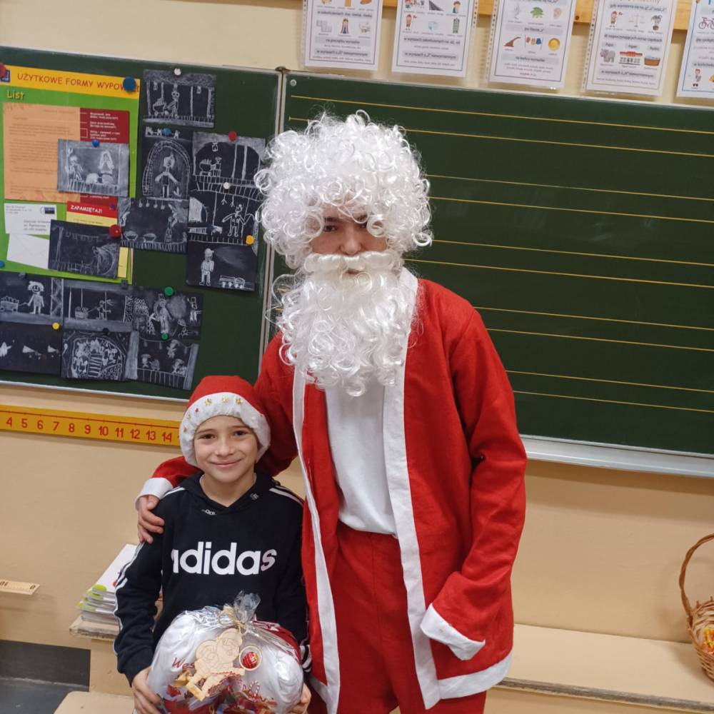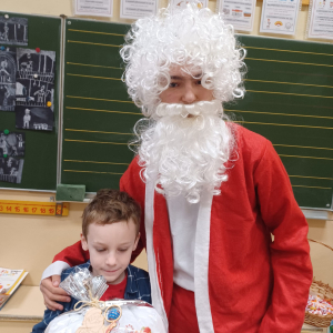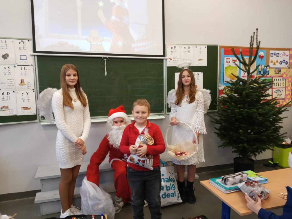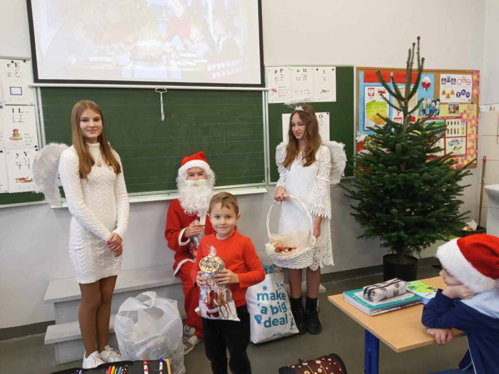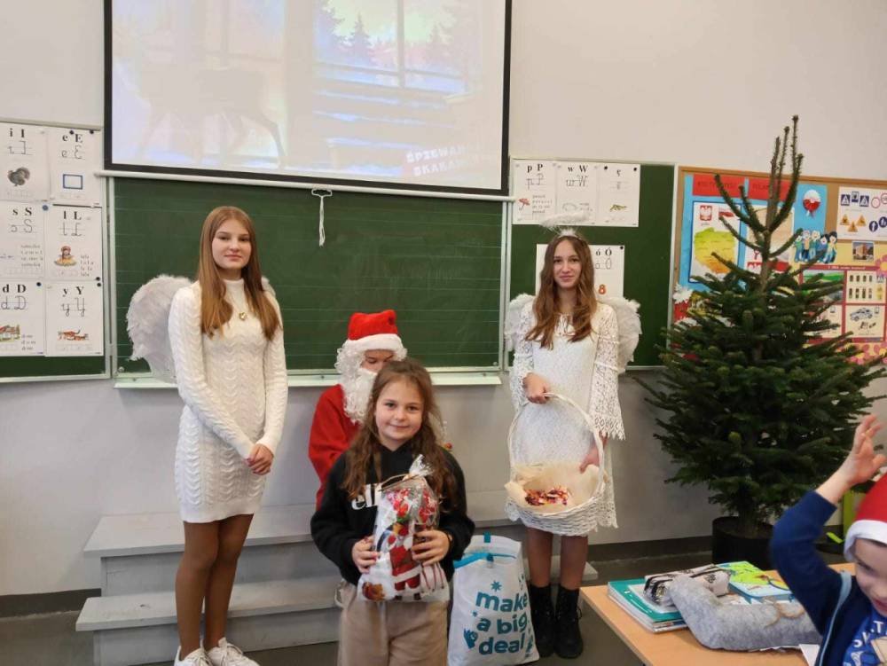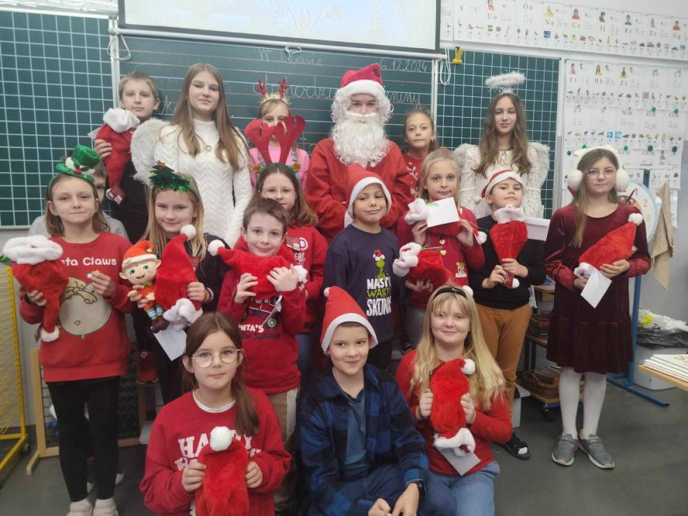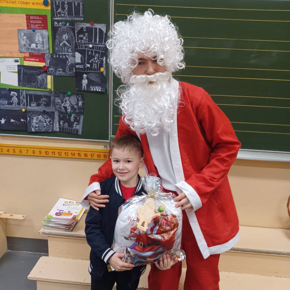 Szóstego grudnia, choć ani śladu białego puchu za oknem, to i tak zapanował zimowy, odświętny nastrój. Wszyscy w tym roku byli grzeczni, więc z niecierpliwością oczekiwano przybycia wyjątkowego Gościa - św. Mikołaja, który w towarzystwie Śnieżynek-Aniołków wręczał uczniom podarunki. Symbolicznych rózg ze sobą nie przywiózł, gdyż nie było takiej konieczności. Nie zabrakło za to wspólnych, pamiątkowych zdjęć oraz cukierków.