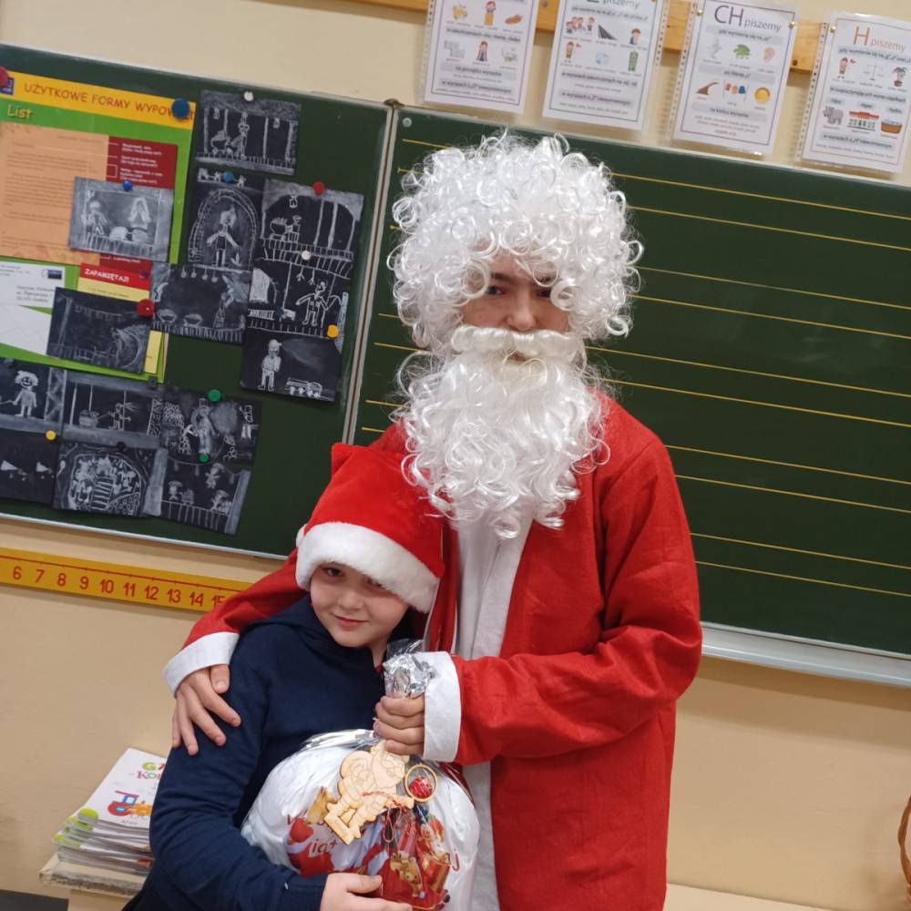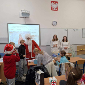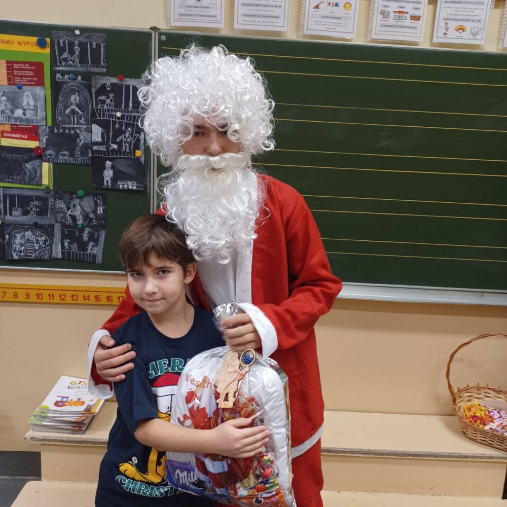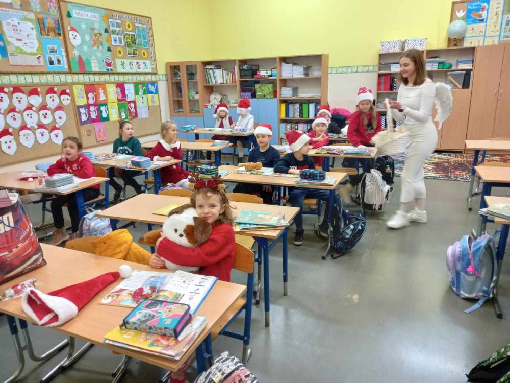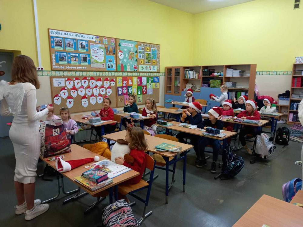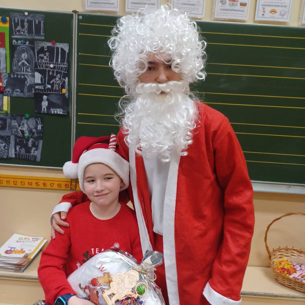 Szóstego grudnia, choć ani śladu białego puchu za oknem, to i tak zapanował zimowy, odświętny nastrój. Wszyscy w tym roku byli grzeczni, więc z niecierpliwością oczekiwano przybycia wyjątkowego Gościa - św. Mikołaja, który w towarzystwie Śnieżynek-Aniołków wręczał uczniom podarunki. Symbolicznych rózg ze sobą nie przywiózł, gdyż nie było takiej konieczności. Nie zabrakło za to wspólnych, pamiątkowych zdjęć oraz cukierków.