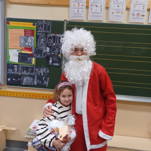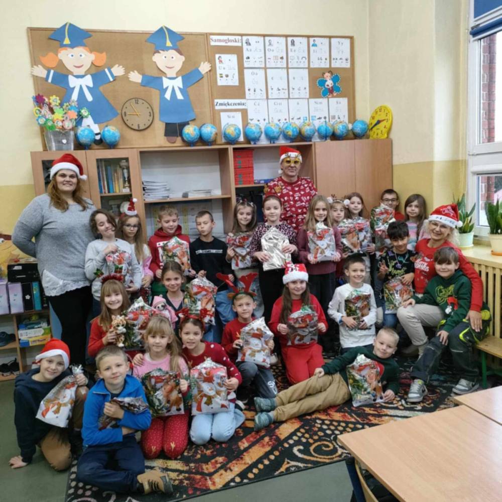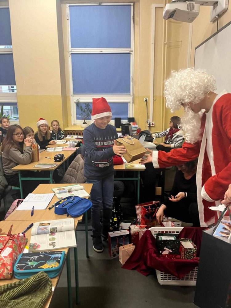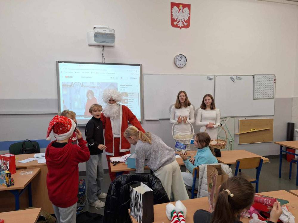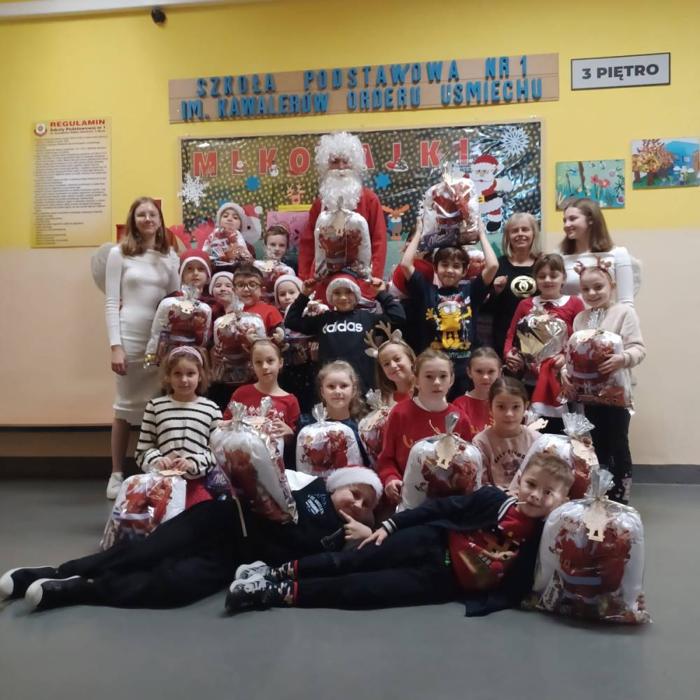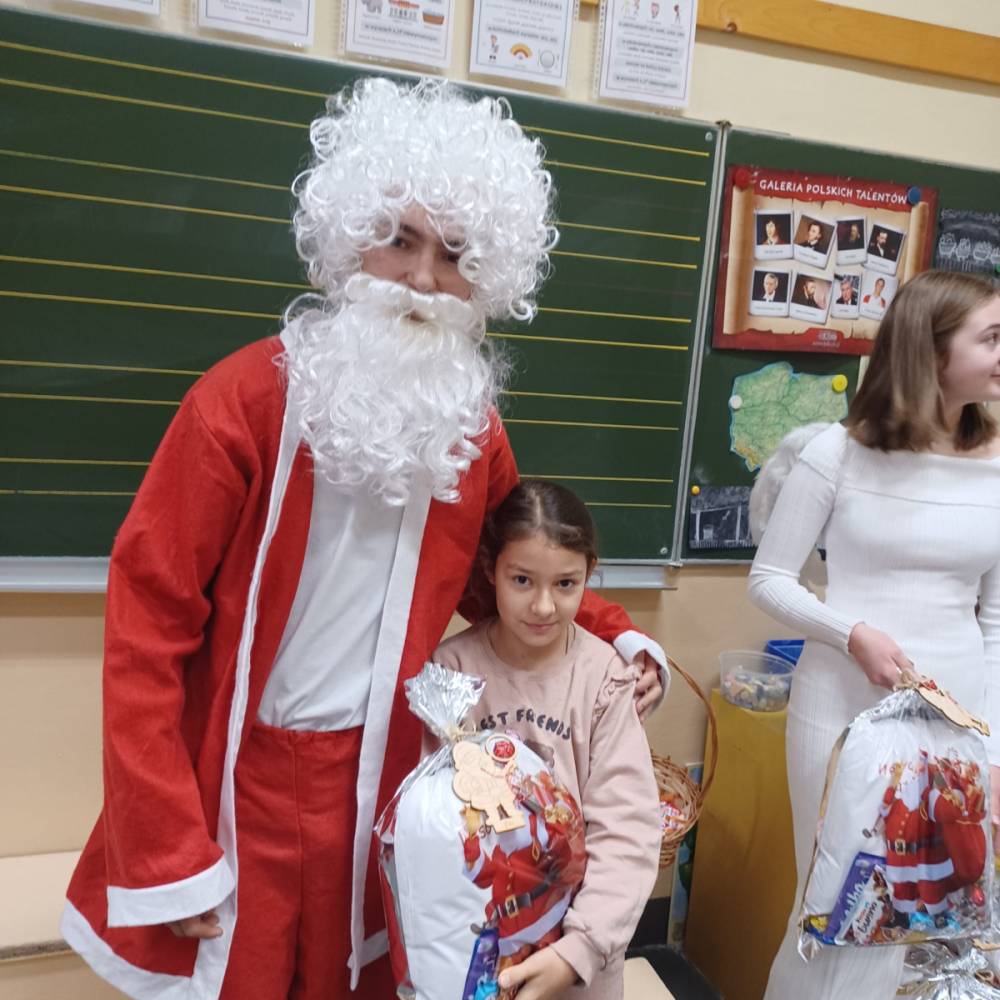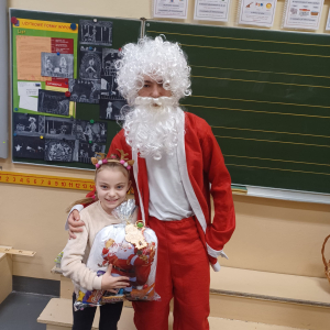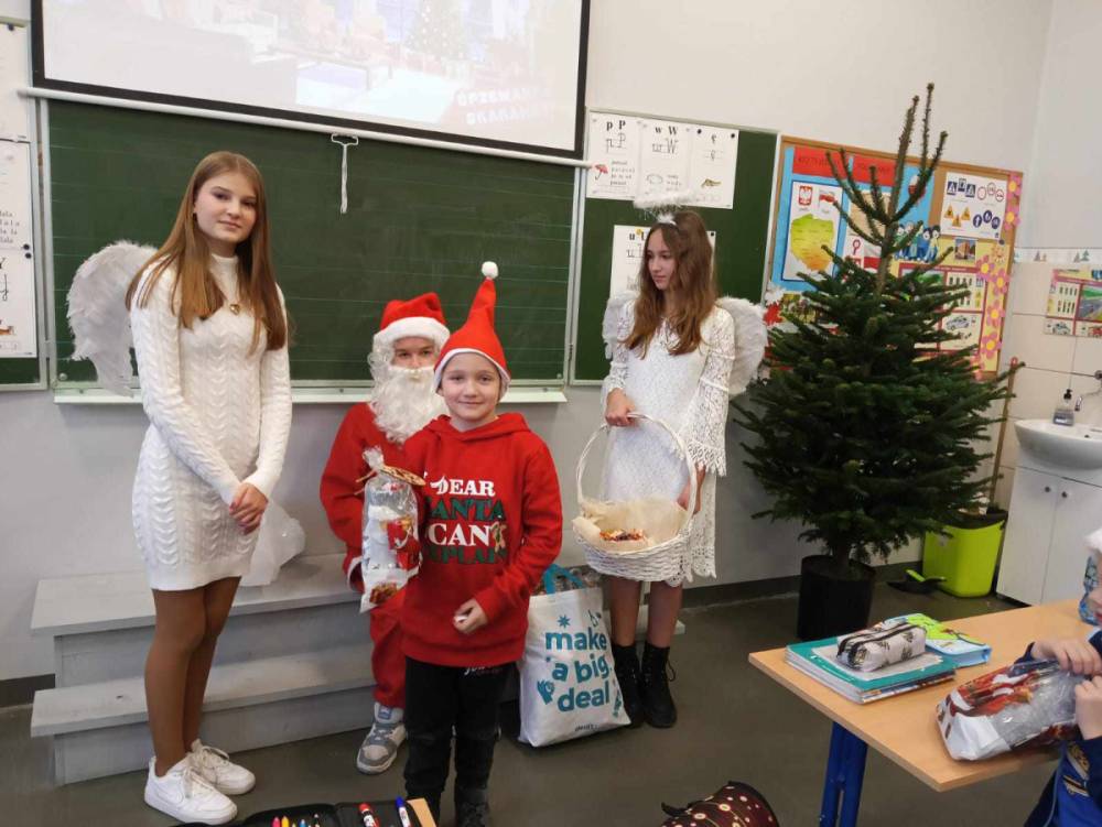 Szóstego grudnia, choć ani śladu białego puchu za oknem, to i tak zapanował zimowy, odświętny nastrój. Wszyscy w tym roku byli grzeczni, więc z niecierpliwością oczekiwano przybycia wyjątkowego Gościa - św. Mikołaja, który w towarzystwie Śnieżynek-Aniołków wręczał uczniom podarunki. Symbolicznych rózg ze sobą nie przywiózł, gdyż nie było takiej konieczności. Nie zabrakło za to wspólnych, pamiątkowych zdjęć oraz cukierków.