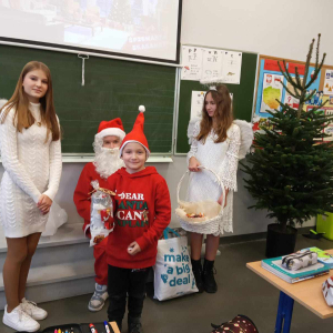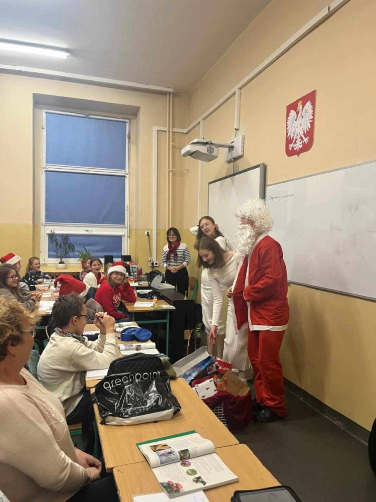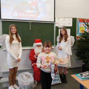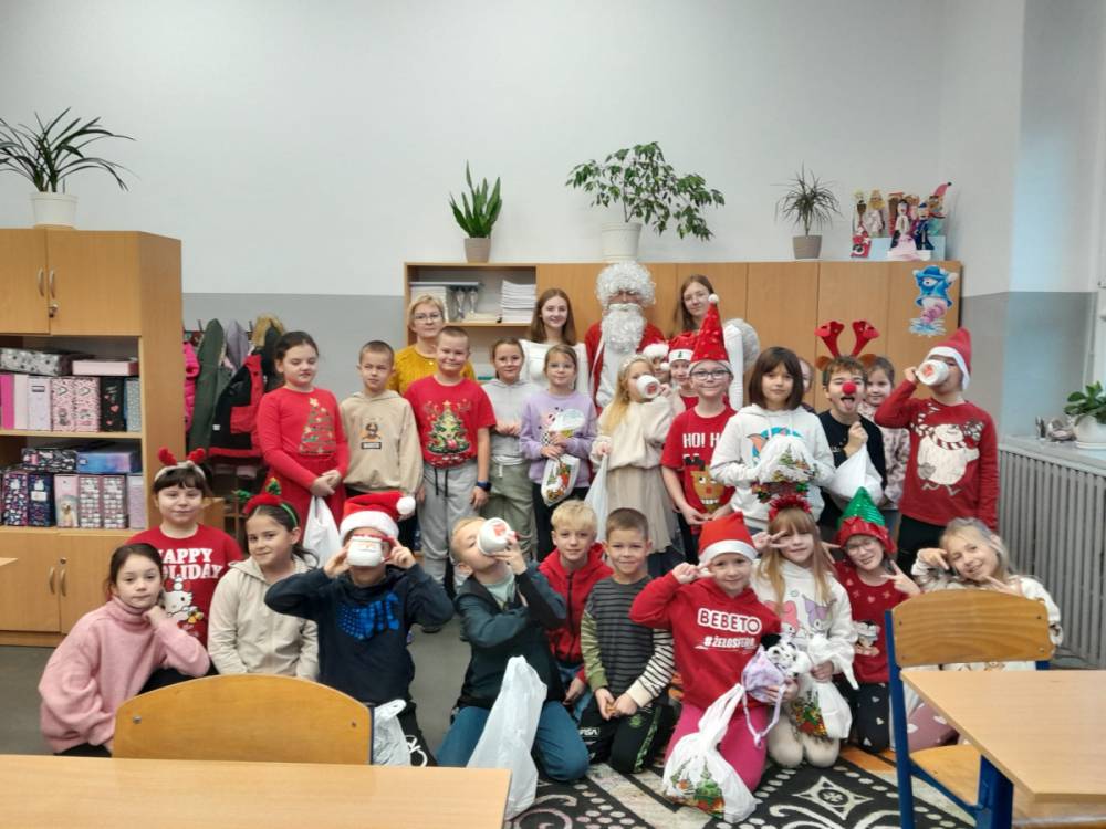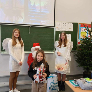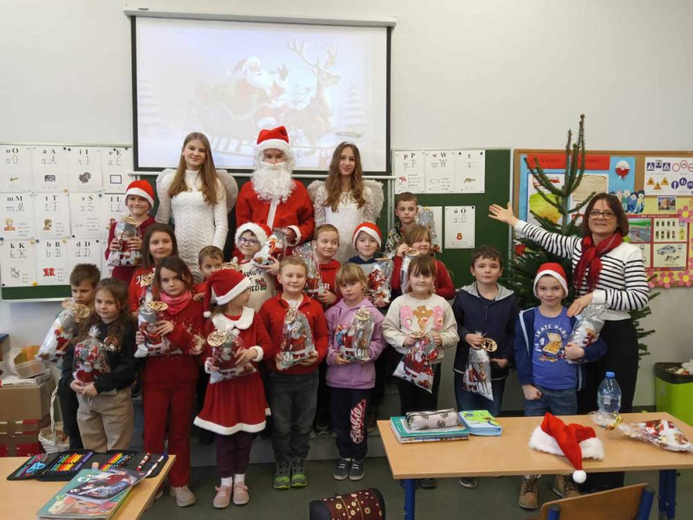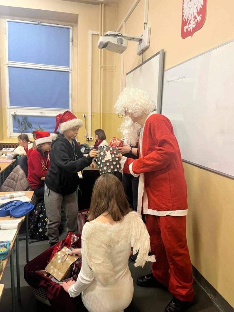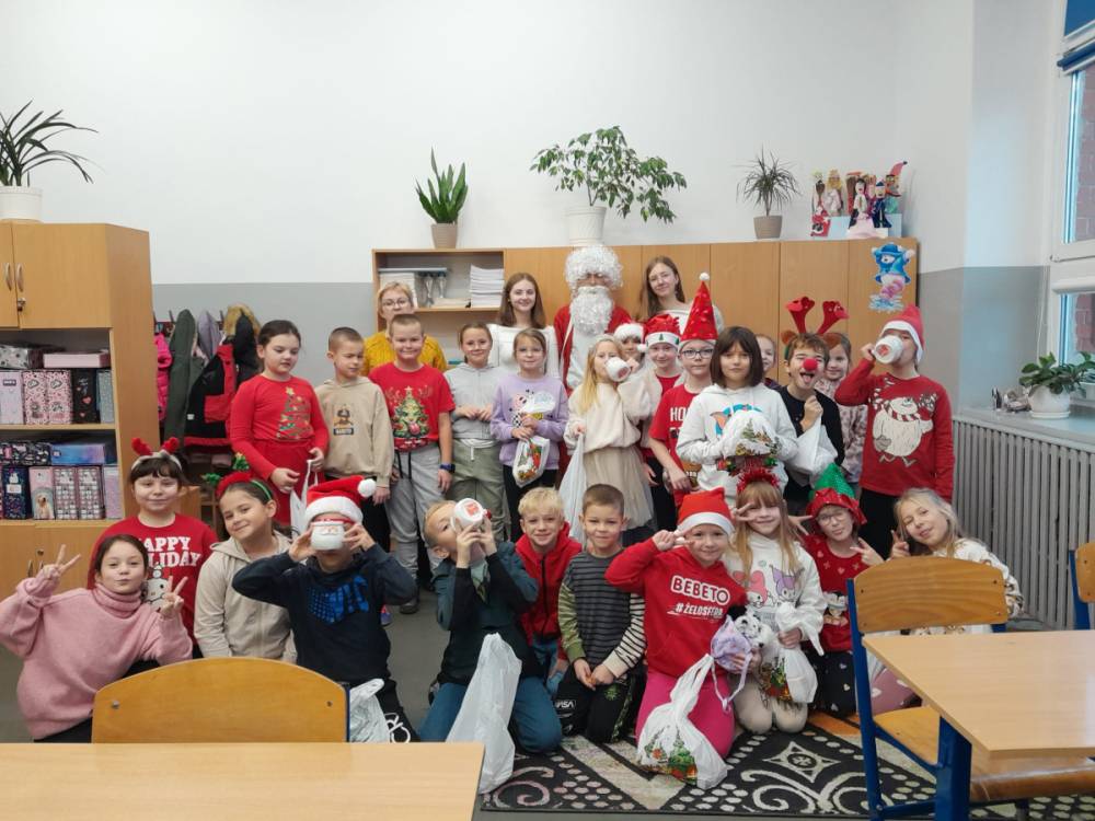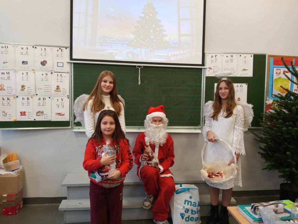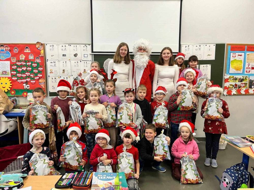 Szóstego grudnia, choć ani śladu białego puchu za oknem, to i tak zapanował zimowy, odświętny nastrój. Wszyscy w tym roku byli grzeczni, więc z niecierpliwością oczekiwano przybycia wyjątkowego Gościa - św. Mikołaja, który w towarzystwie Śnieżynek-Aniołków wręczał uczniom podarunki. Symbolicznych rózg ze sobą nie przywiózł, gdyż nie było takiej konieczności. Nie zabrakło za to wspólnych, pamiątkowych zdjęć oraz cukierków.