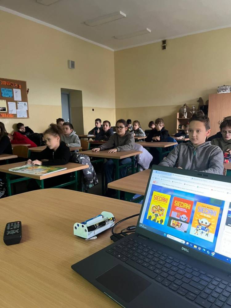 Czy lekcje wychowawcze w innej formie to dobry pomysł? Oczywiście! Klasa 4b wzięła udział w niezwykłej lekcji online zorganizowanej przez Fundacja Dajemy Dzieciom Siłę pod tytułem "Sieciakowa lekcja: Internet Mocy bez Przemocy" poprowadzonej przez autora serii książek "Sieciaki" Łukasza Wojtasika. Zajęcia miały na celu uwrażliwienie uczennic i uczniów na problem przemocy w sieci, zapoznanie ich z możliwymi konsekwencjami cyberprzemocy i nauczenie reagowania na jej przejawy. Misja "Bezpieczny Internet" miała w naszej szkole kolejną, ciekawą odsłonę. Serdecznie dziękujemy organizatorom za solidną dawkę wiedzy w przystępnej formie.