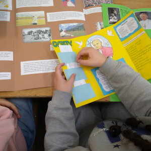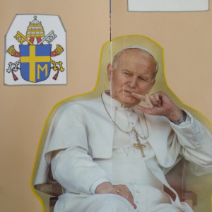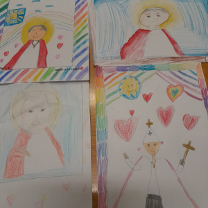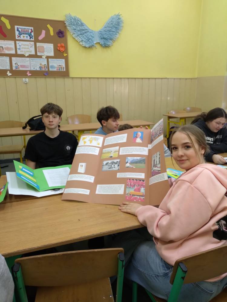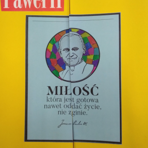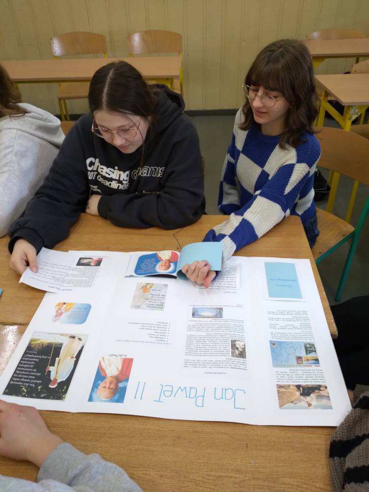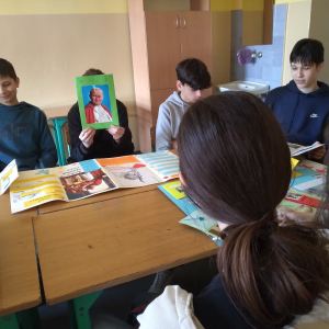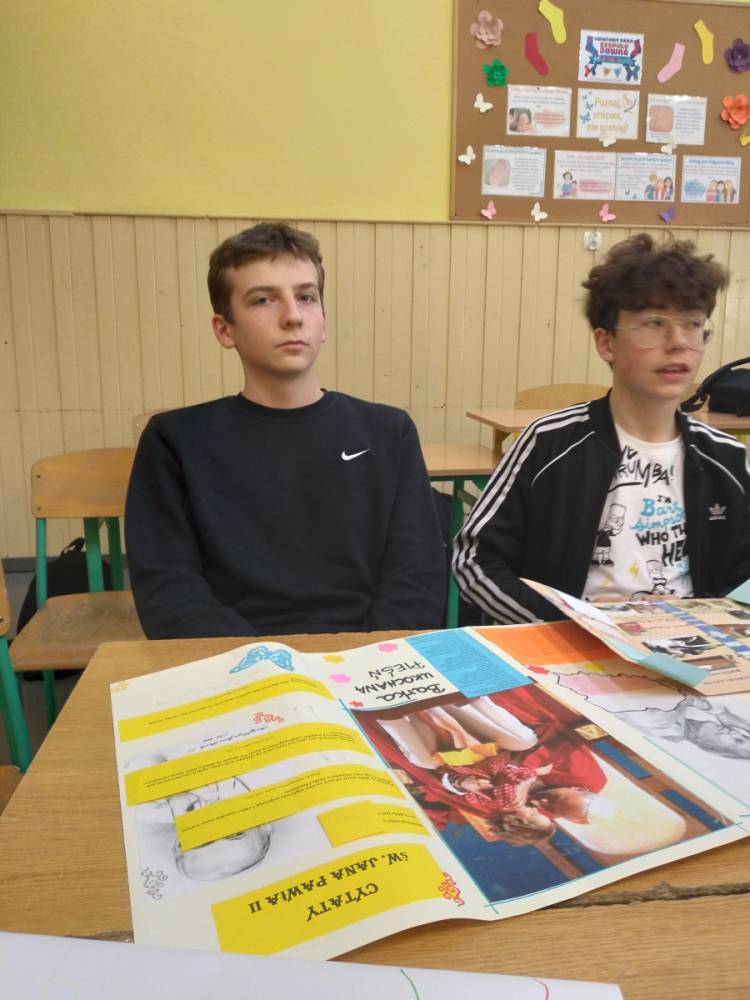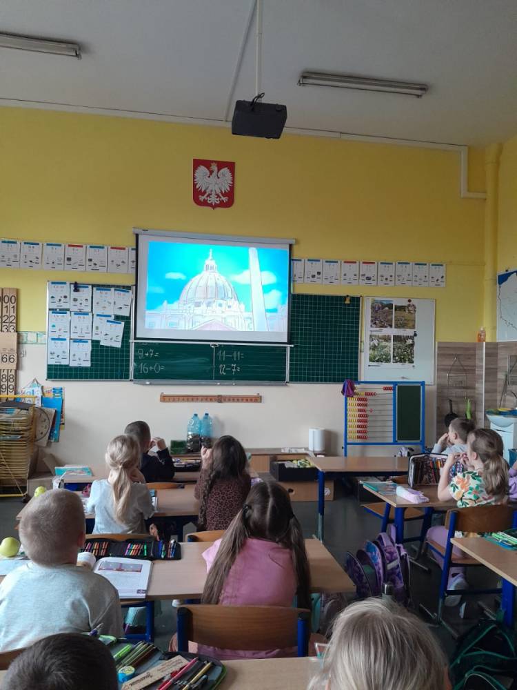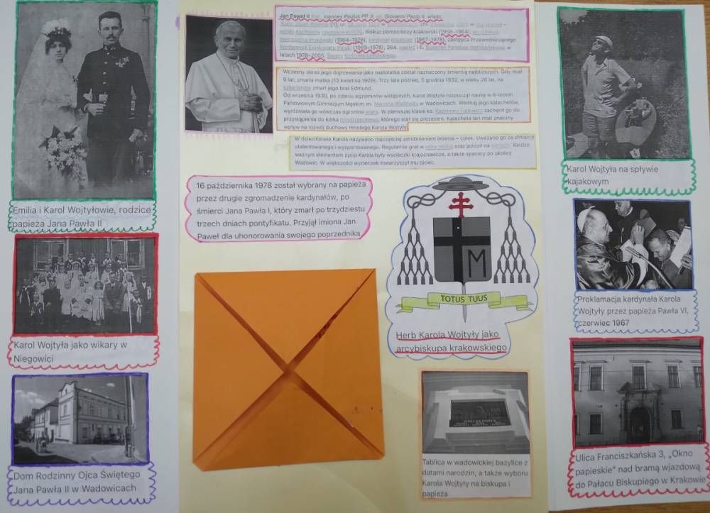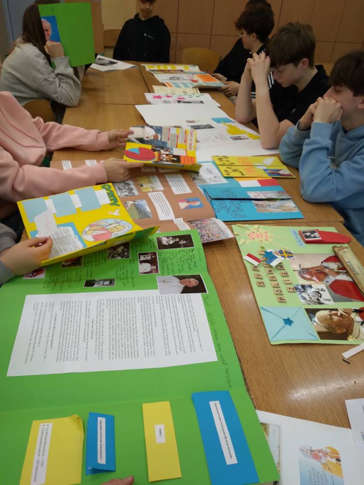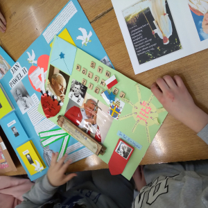 2 kwietnia obchodziliśmy 20 rocznicę śmierci Papieża św. Jana Pawła II. Z tej okazji została wykonana gazetka prezentująca pontyfikat św. Jana Pawła II, natomiast w klasach I-VIII na religii zostały przeprowadzone lekcje tematyczne. Uczniowie, poznając drogę życiową Karola Wojtyły oglądali film „Karol Wojtyła – Jan Paweł II” i prezentację multimedialną o św. Janie Pawle II, przeglądali lapbooki „Jan Paweł II – Wielki Papież” oraz wykonywali pracę plastyczną.