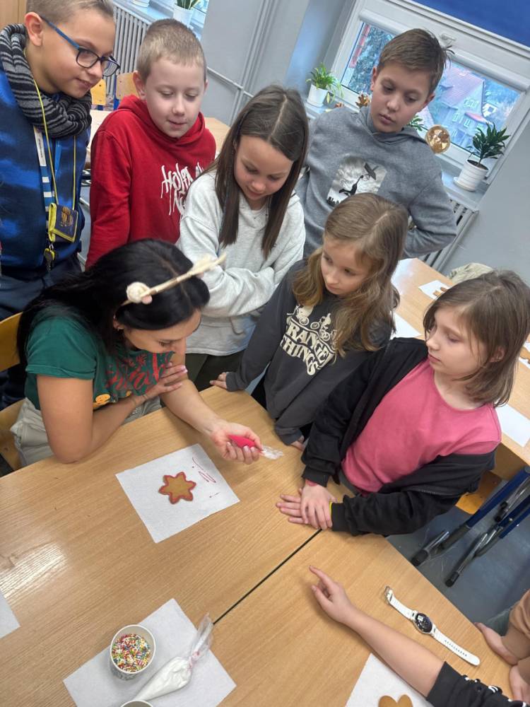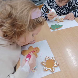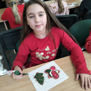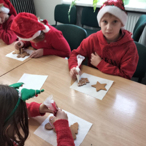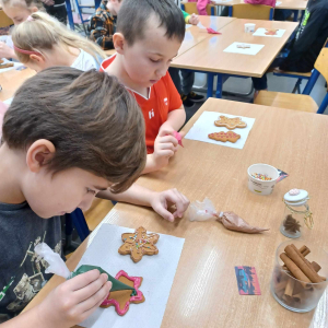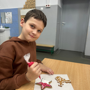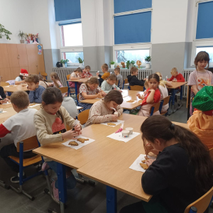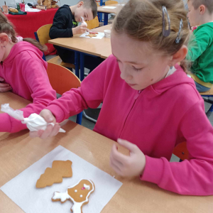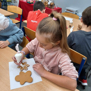 Słodkości lubi prawie każdy, ale okazję, by wykonać je własnoręcznie mają nieliczni. W przededniu Mikołajek nasi uczniowie klas Ic, IIa, IIc, IIIa, IVa uczestniczyli w warsztatach piernikowych. Po poznaniu historii najsłynniejszego świątecznego ciastka uczestnicy przystąpili do tworzenia lukrowej polewy, a następnie ozdabiania upieczonych według tradycyjnej receptury pierników. Niepowtarzalne - wykonane samodzielnie smakują bowiem najlepiej. Niektórzy zjedli je od razu, inni z dumą zachowali jako słodką pamiątkę, jeszcze inni postanowili podarować je sprawiając radość najbliższym.