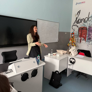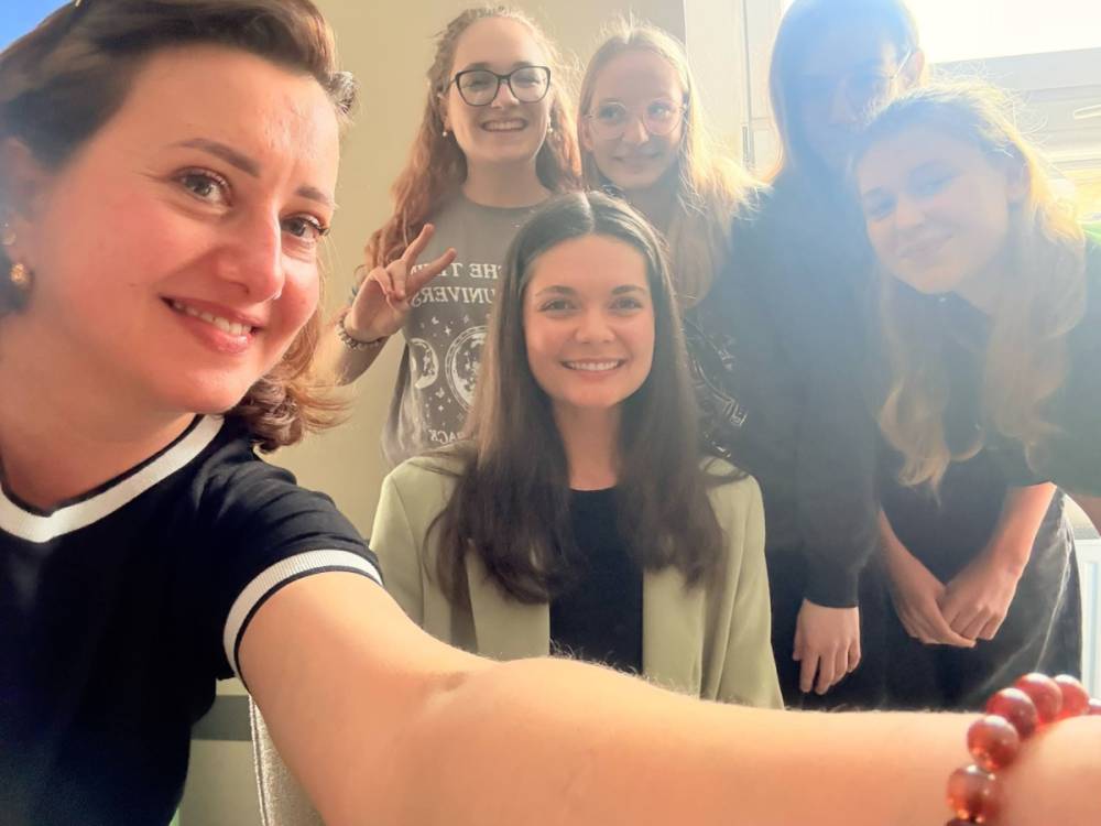 W wyjątkowym spotkaniu mieli okazję uczestniczyć nasi uczniowie. Odwiedziła nas Lane Johansen – stypendystka prestiżowego Programu Fulbrighta. W roku akademickim 2024/2025 Lane dołączyła do zespołu Wydziału Neofilologii Państwowej Akademii Nauk Stosowanych w Nysie, gdzie dzieli się swoją wiedzą i doświadczeniem w zakresie języka angielskiego oraz kultury amerykańskiej.
