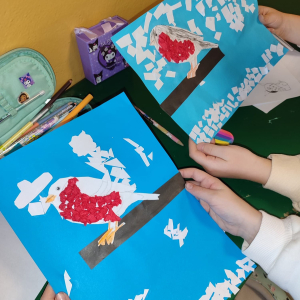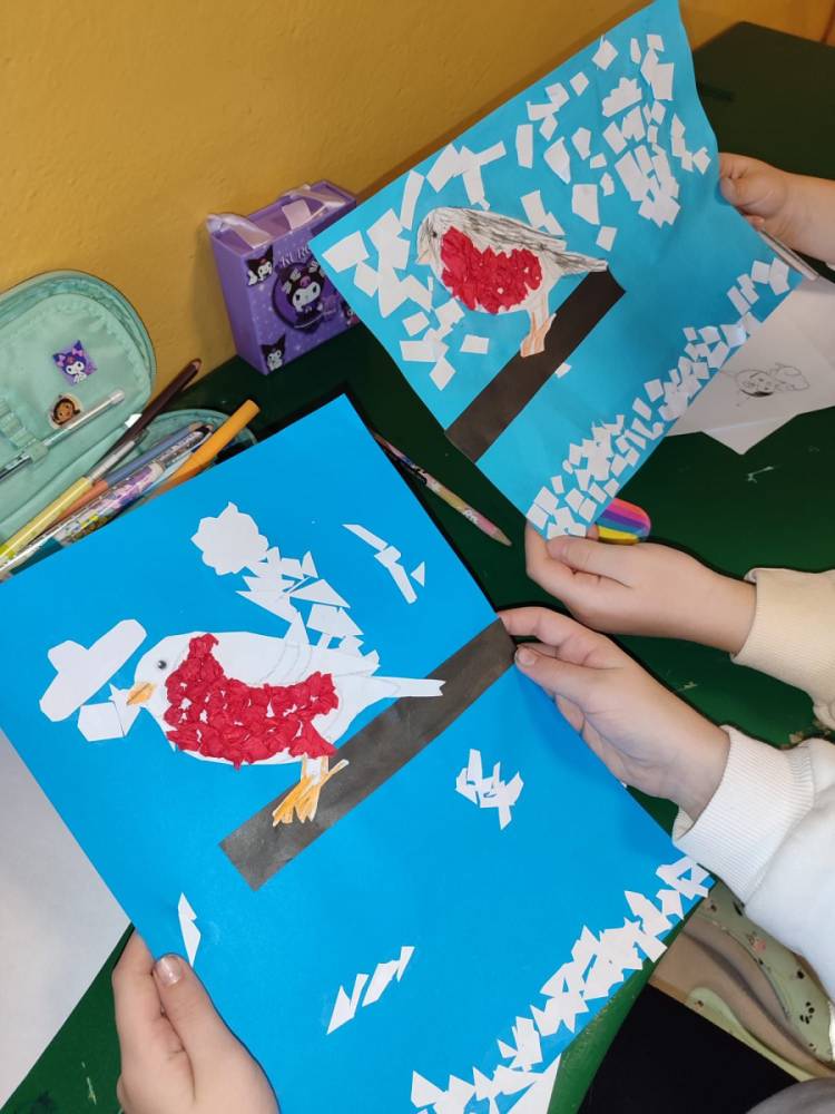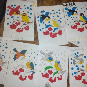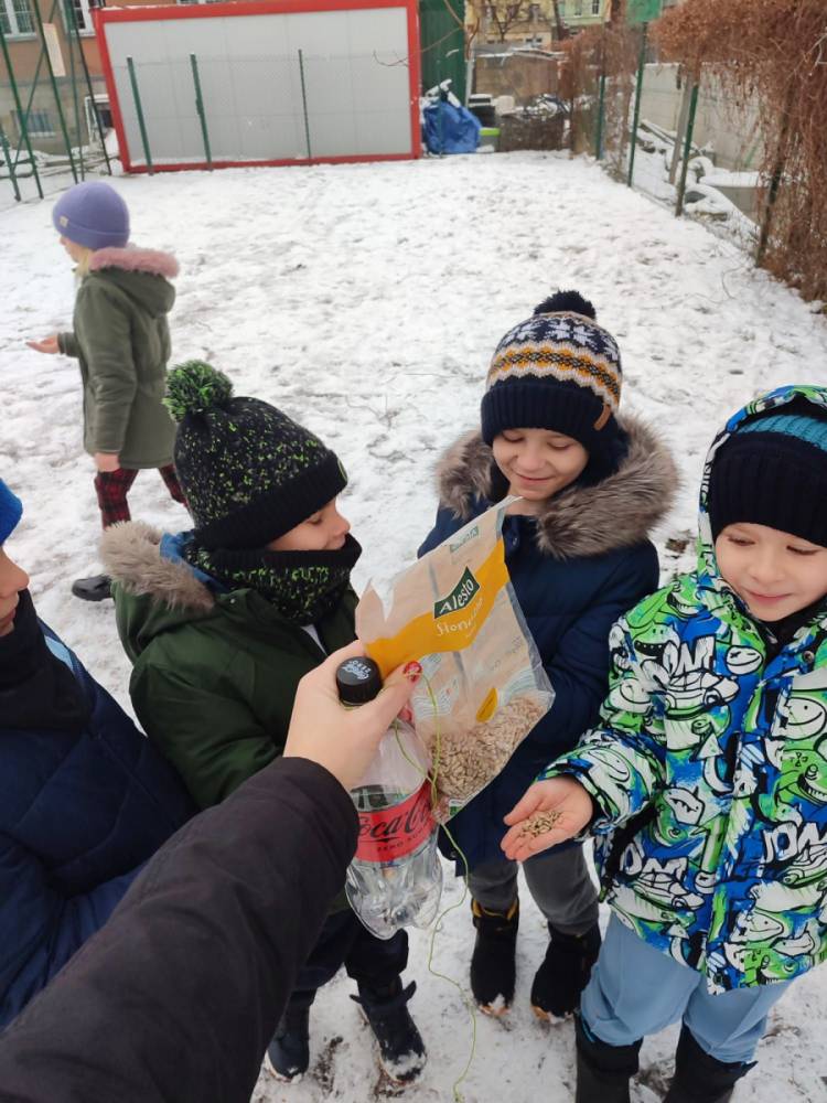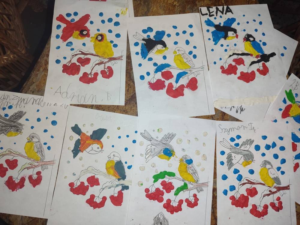 Zgłębiają wiedzę o ptakach, ogladają filmy, obserwując ich życie dzięki specjalnym kamerom badawczym, dokarmiają, aby przetrwały zimę. A potem wspólnie tworzą ciekawe prace plastyczne. I tak przyjemnie czas płynie przed albo po lekcjach..