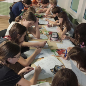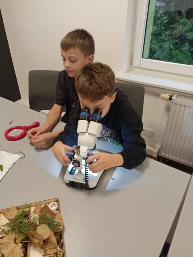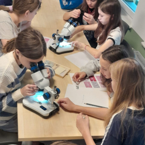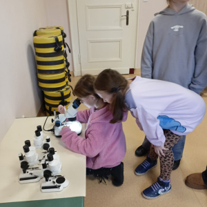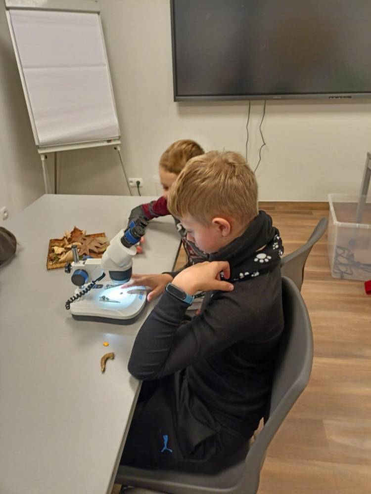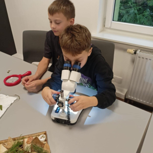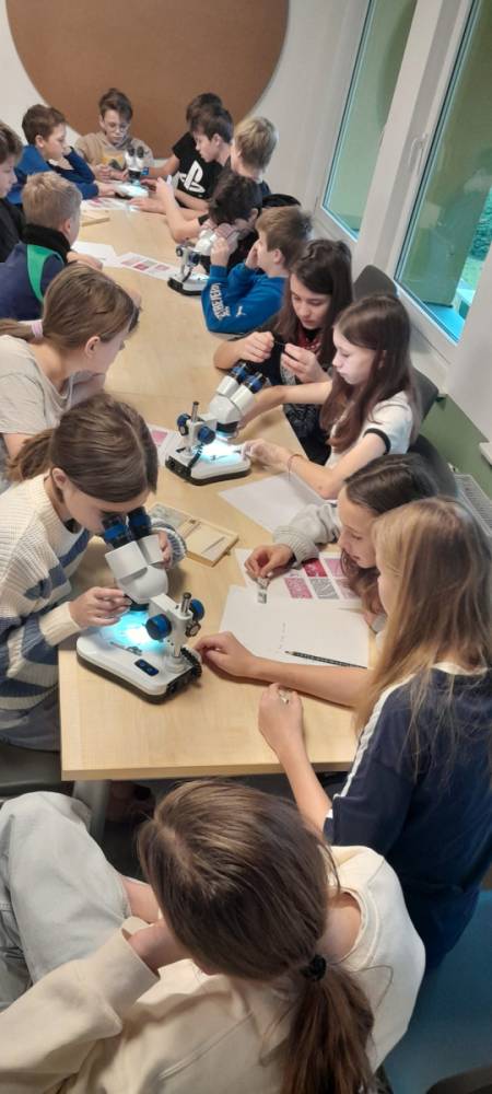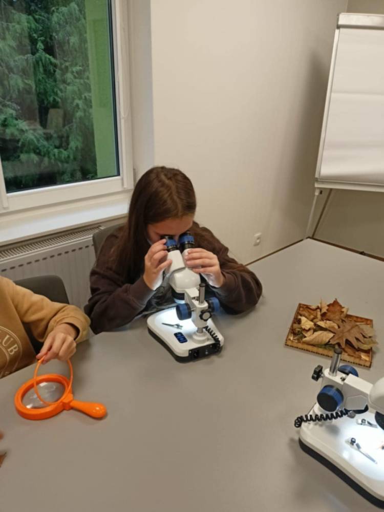 Dzień drugi spędzony został przez uczestników równie aktywnie, co pierwszy. Choć pogoda nie do końca dopisywała to poszukiwaczy przyrodniczych skarbów i odkrywców darów natury w zupełności nie odstraszyła. W skupieniu przebiegały także warsztaty mikroskopowe, w trakcie których uczniowie nabywali nowe kompetencje. A interaktywne zajęcia matematyczne pozwoliły odkryć w niejednym duszę Pitagorasa...