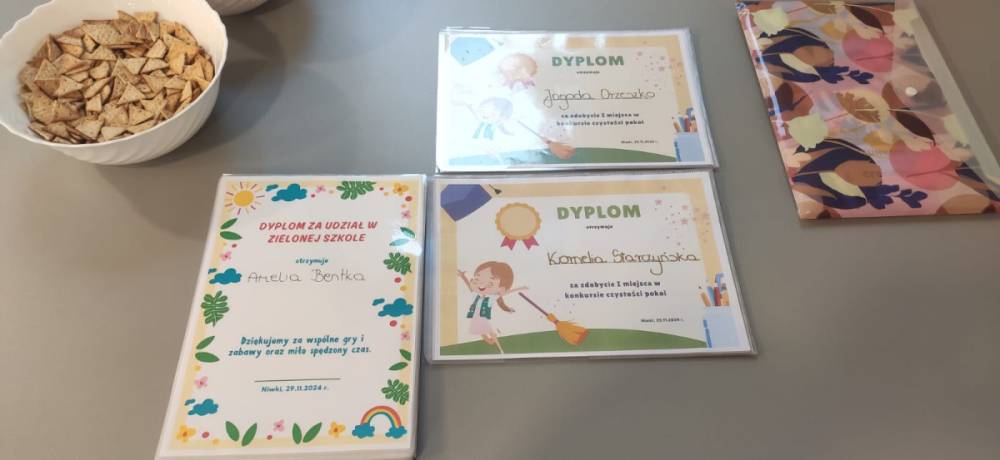 W piątym dniu były zajęcia muzyczne z bum rurkami oraz zawody sportowe ze specjalnymi okularami. Na zakończenie Zielonej Szkoły uczniom wręczono medale i dyplomy za wspaniałe zachowanie i zabawę w czasie pobytu. Wyróżnione zostały także osoby, które zawsze dbały o czystość w swoim pokoju.