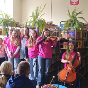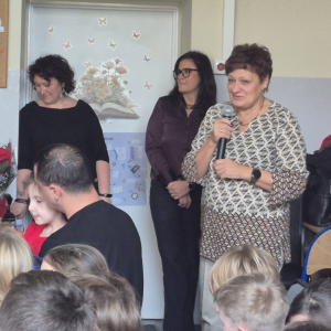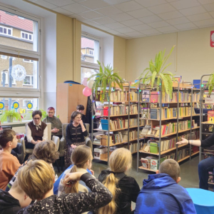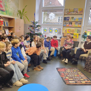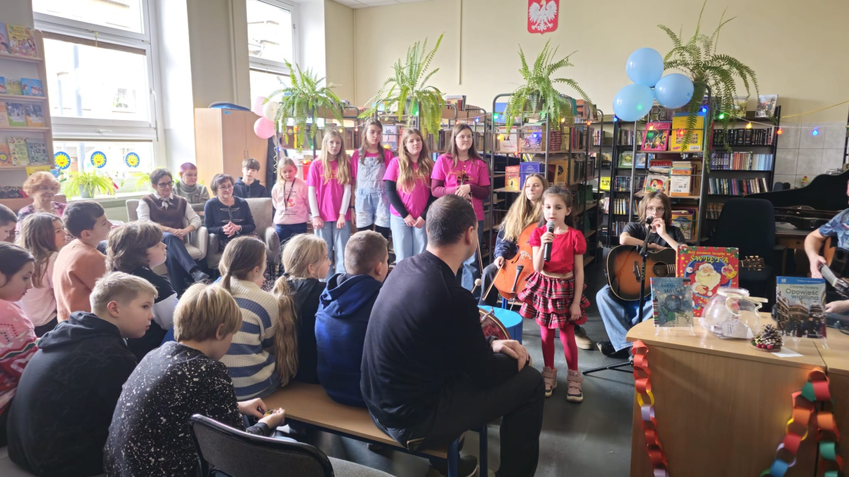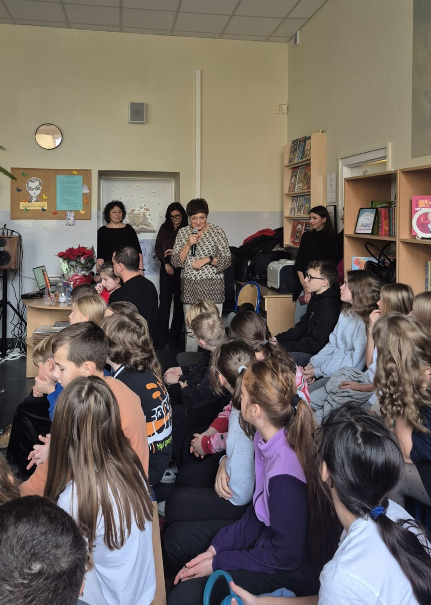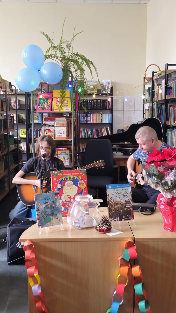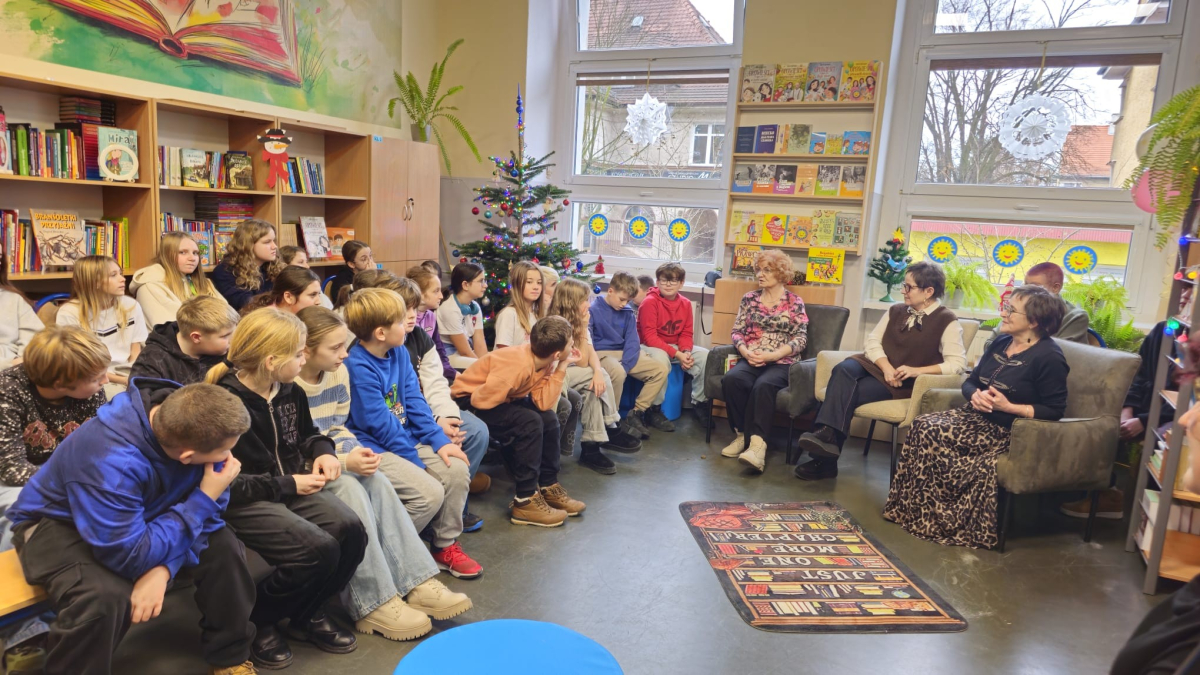 W takich właśnie wyjątkowych wnętrzach w ubiegły poniedziałek mieliśmy okazję gościć trzy wspaniałe nauczycielki, które przez lata oddawały swoje serca i energię w rozwój naszej biblioteki- panią Halinę Poterałowicz, panią Joannę Bernat i panią Gabrielę Leoniec. Spotkanie muzycznie uświetnił Klub Miłośników Dobrej Piosenki oraz odważna solistka z 1b Pola Fecko, wprowadzając świąteczny nastrój. Było trochę historii, trochę wspominania, dużo uśmiechu, wdzięczności i odrobina nostalgii.