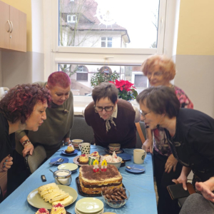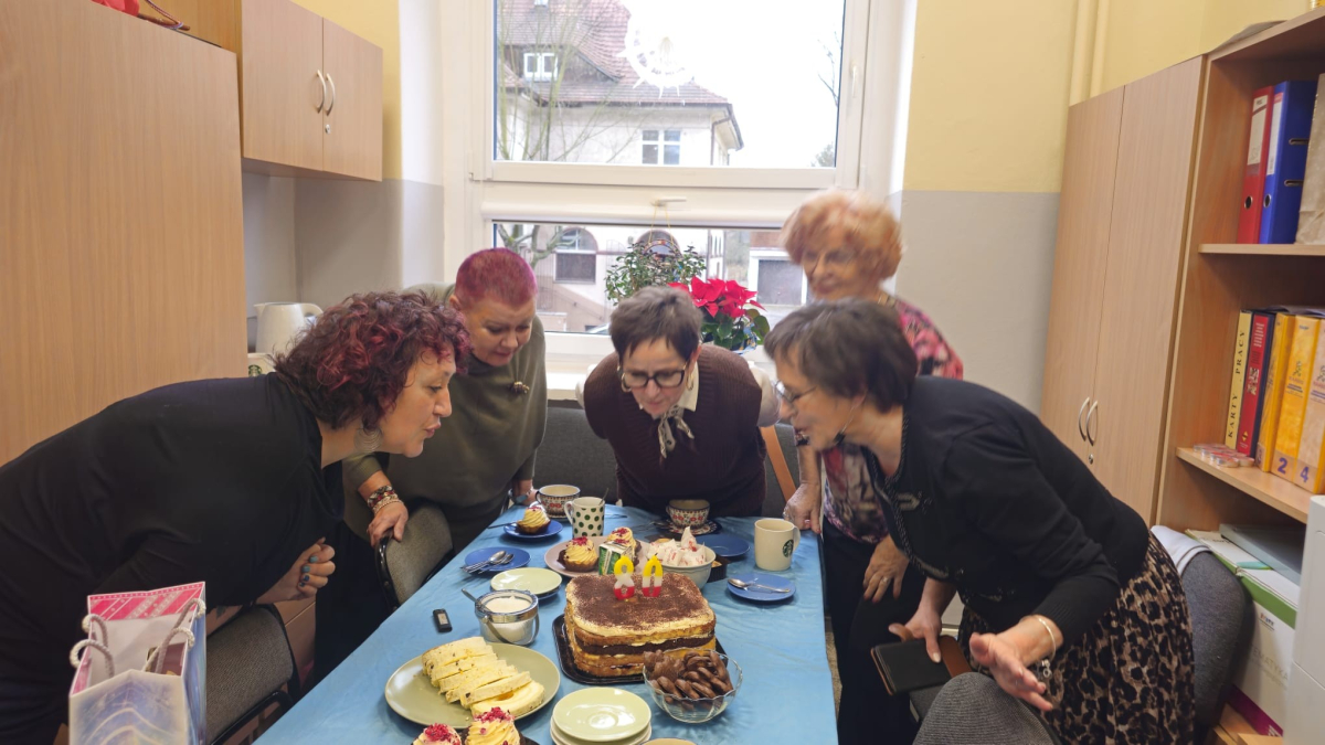 A skoro to impreza urodzinowa, to musiał pojawić się tort. Wspólnie (i międzypokoleniowo) zdmuchnięte świeczki na pewno sprawią, że kolejne lata biblioteki szkolnej będą ciekawe i pełne ciepła. Pięknie dziękujemy naszym gościom za wizytę i do zobaczenia!