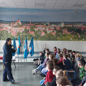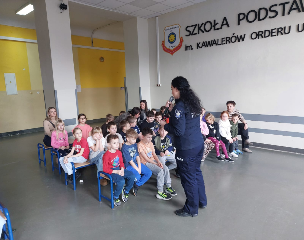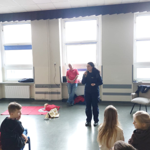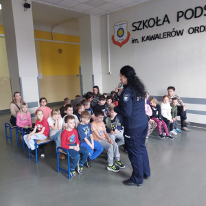Gościliśmy panią policjantkę mł. asp. Martę Kublin z KPP w Nysie, która opowiedziała uczniom o bezpiecznych zachowaniach podczas zimowych zabaw i zagrożeniach, które mogą pojawić się podczas ferii.