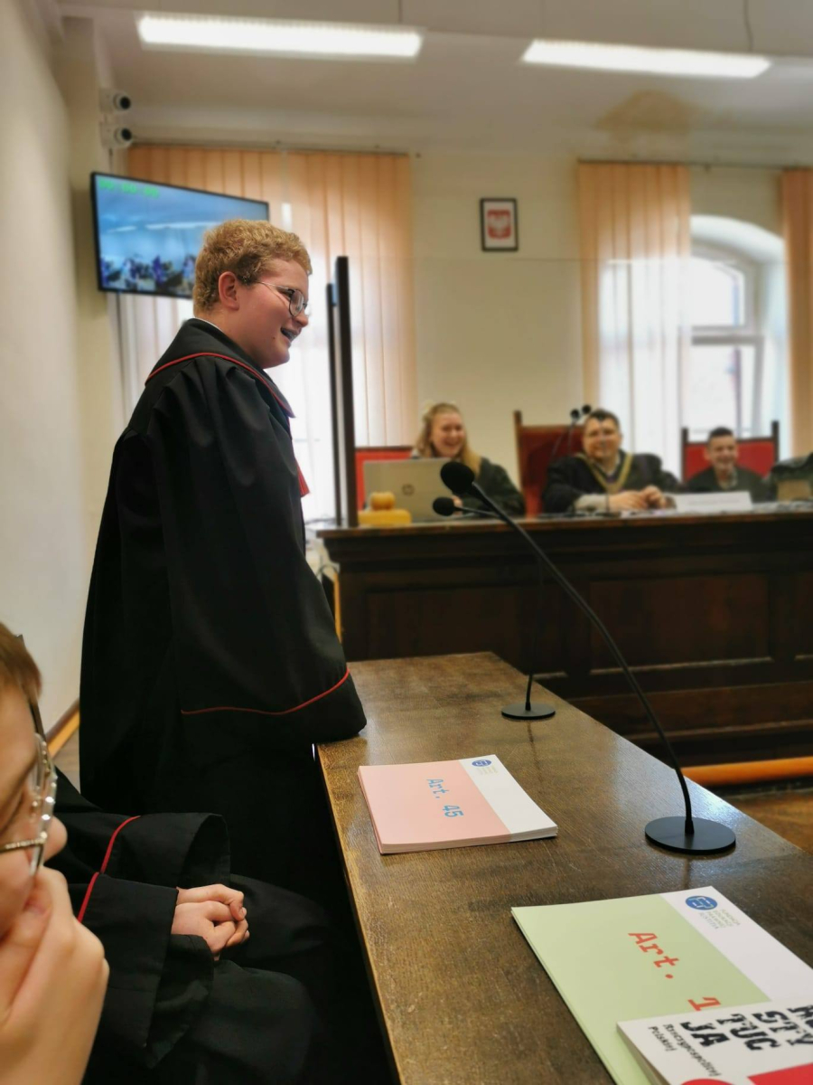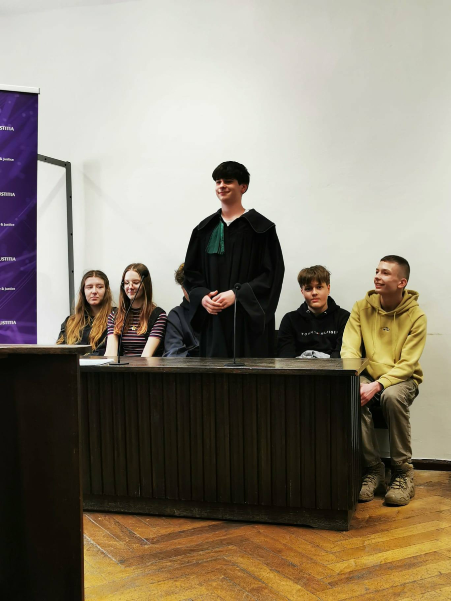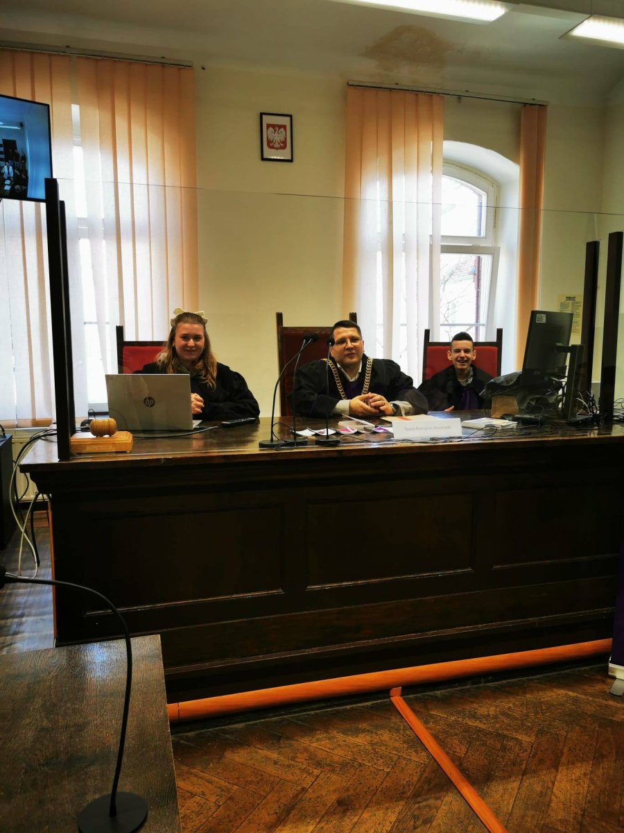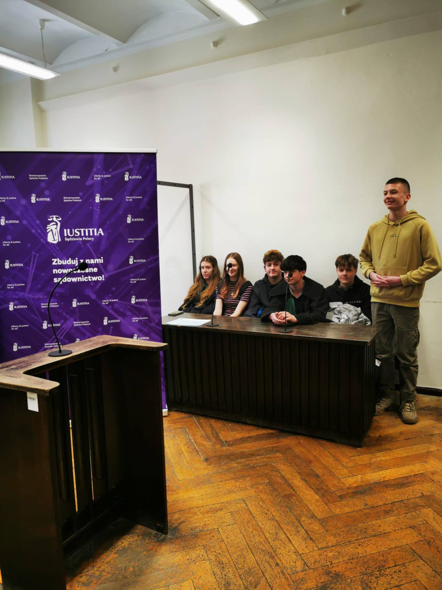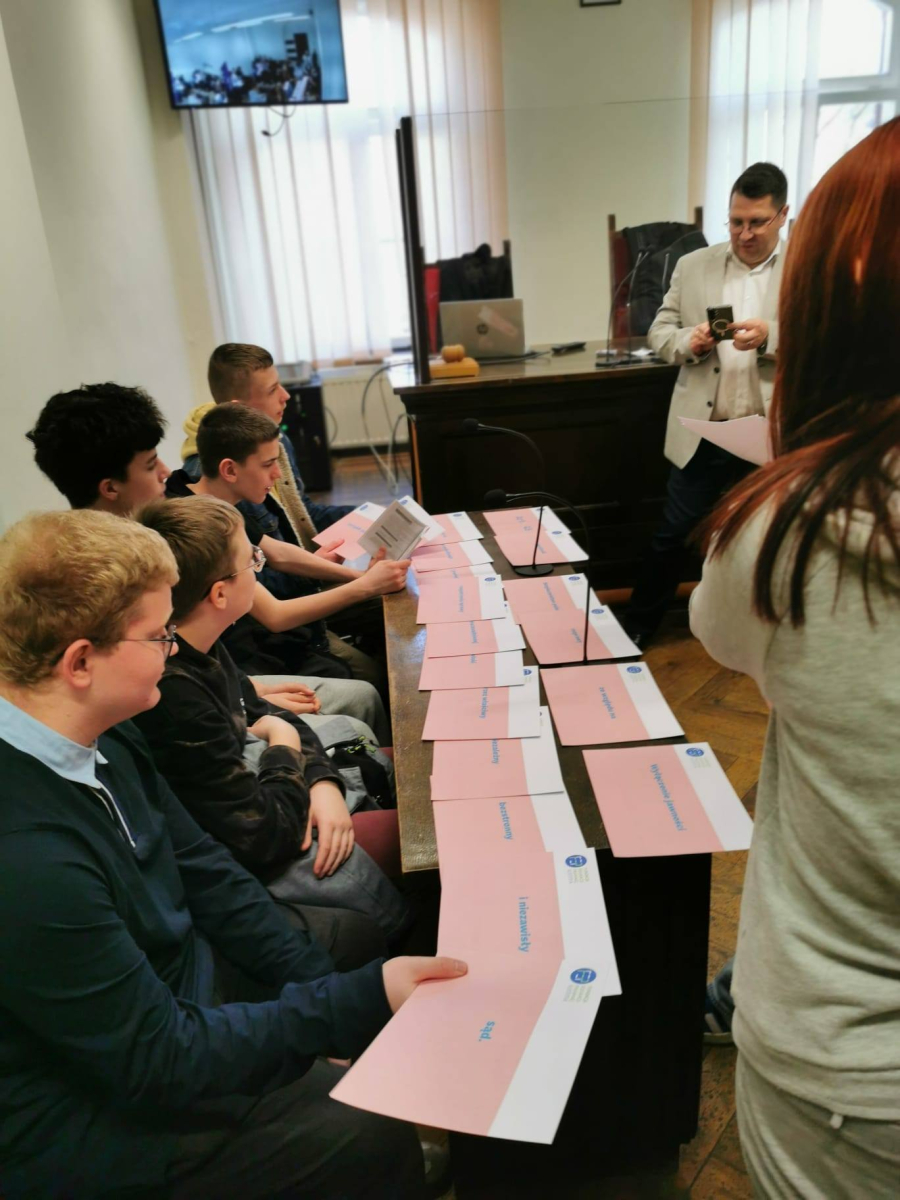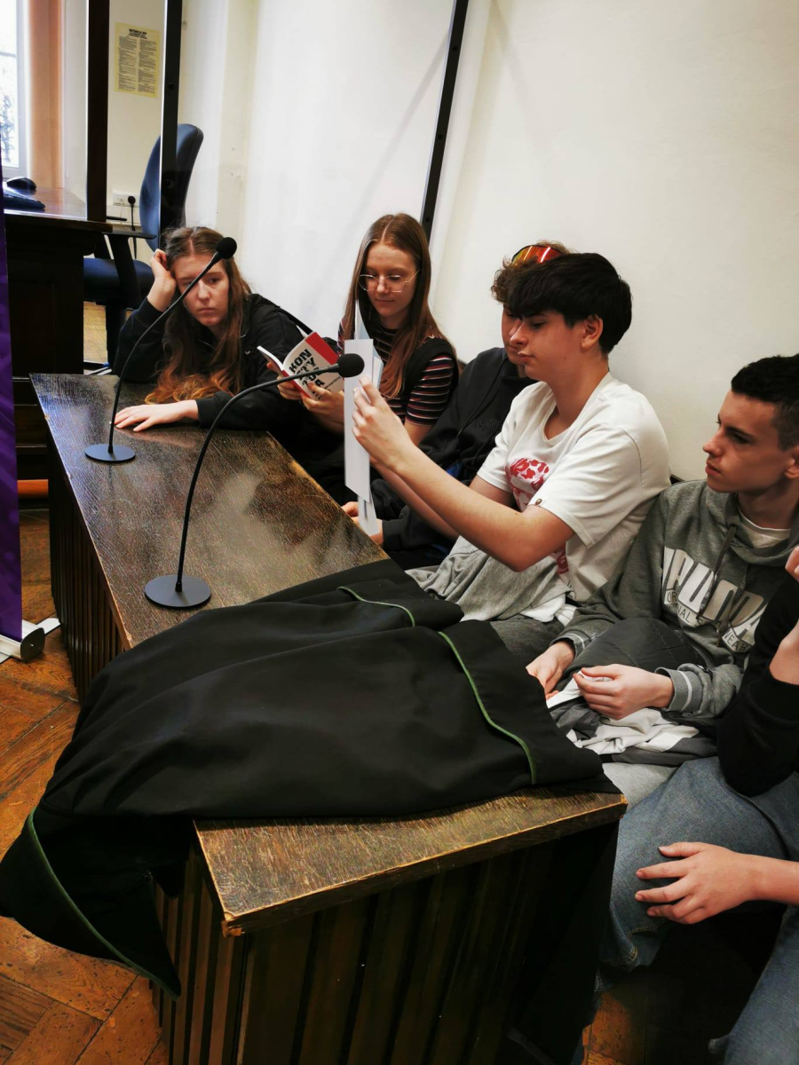 Na zakończenie sędzia przeprowadził interesującą symulację rozprawy sądowej, w której udział wzięli uczniowie, wcielając się w role sędziego, świadków oraz stron postępowania.