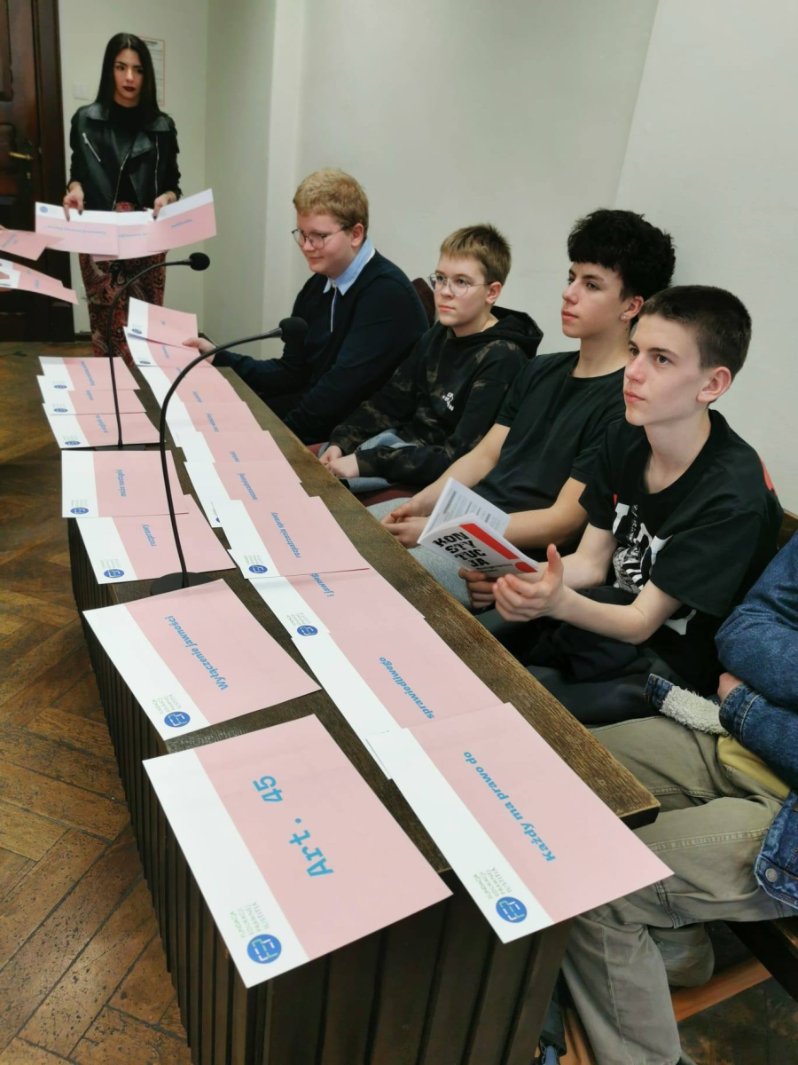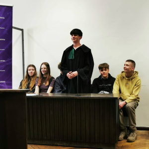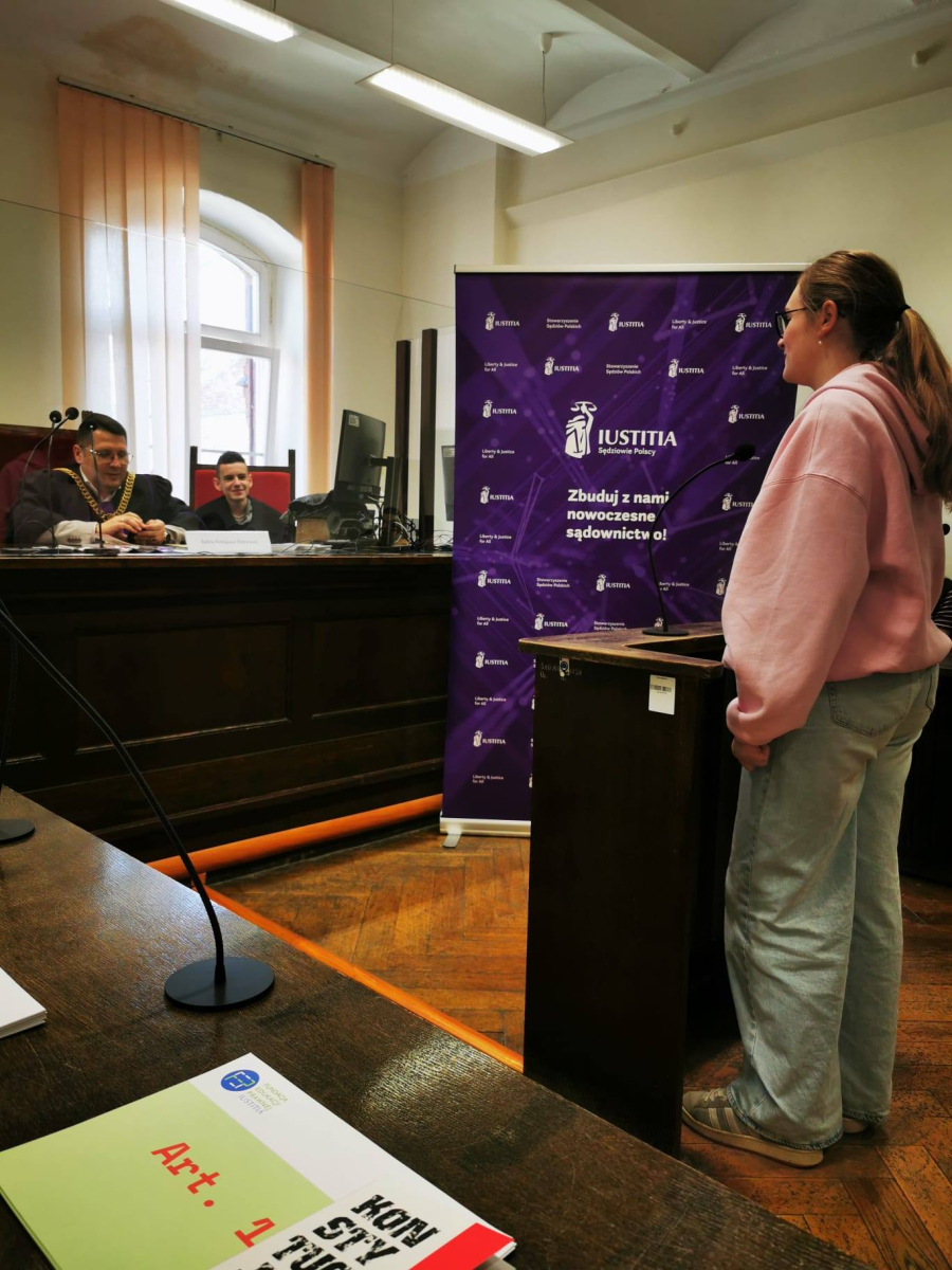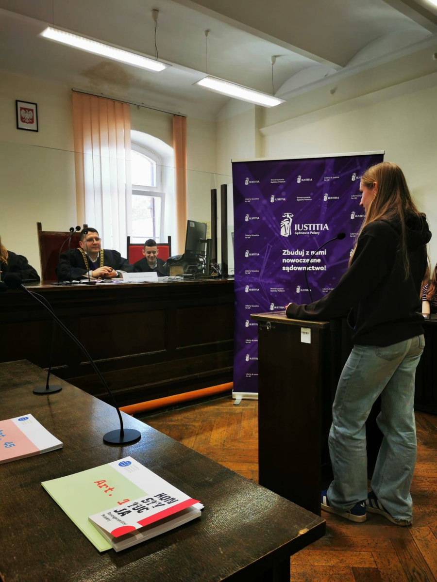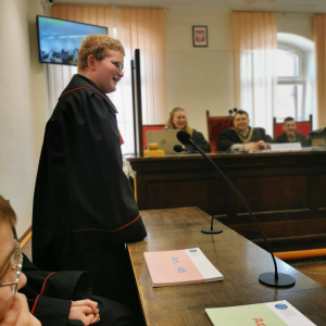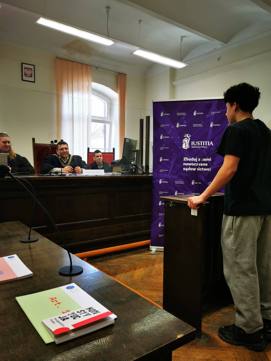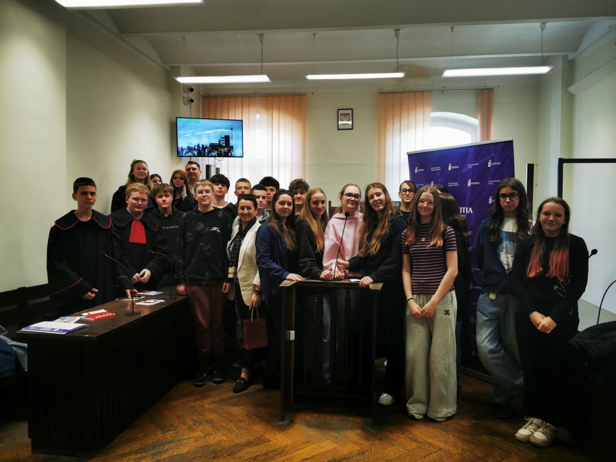 Na zakończenie sędzia przeprowadził interesującą symulację rozprawy sądowej, w której udział wzięli uczniowie, wcielając się w role sędziego, świadków oraz stron postępowania.