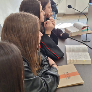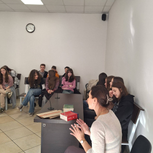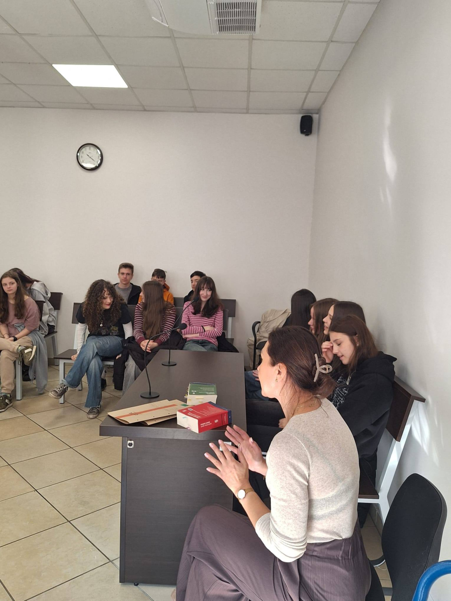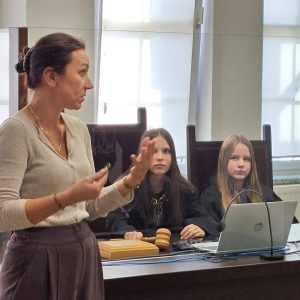 Zajęcia poprowadziła sędzia Anna Ryndak, która opowiedziała o tym, jak wygląda codzienna praca sędziego oraz jakie obowiązki wiążą się z pełnieniem tego zawodu.