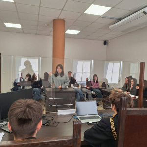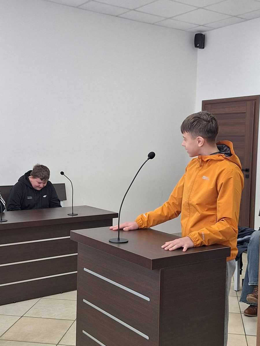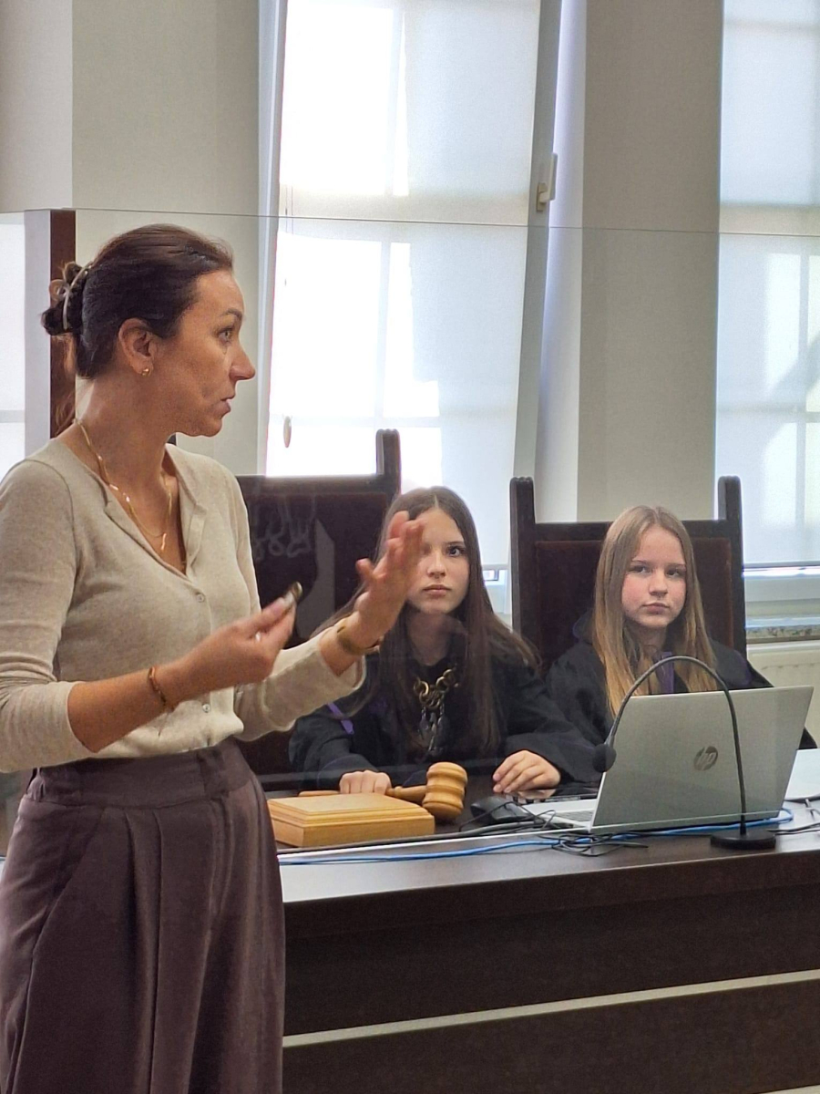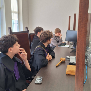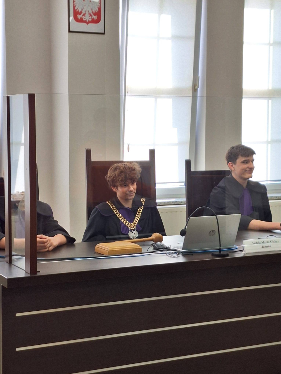 Uczniowie wzięli udział w symulacji rozprawy sądowej, wcielając się w role sędziego, świadków oraz stron postępowania.