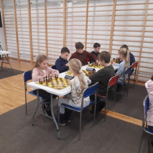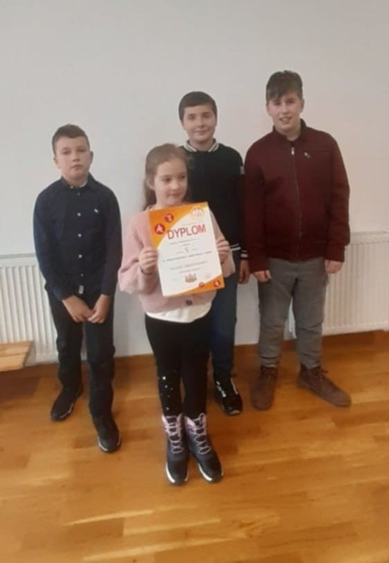 Nasza drużyna - mistrzowie powiatu nyskiego w składzie: Kalina Broszkiewicz (2c), Franciszek Gąsior (5b), Grzegorz Jakus (5b), Oskar Błaszczyk (6b), rozpoczęła turniej od solidnych partii, pokazując dobre przygotowanie i zgranie.