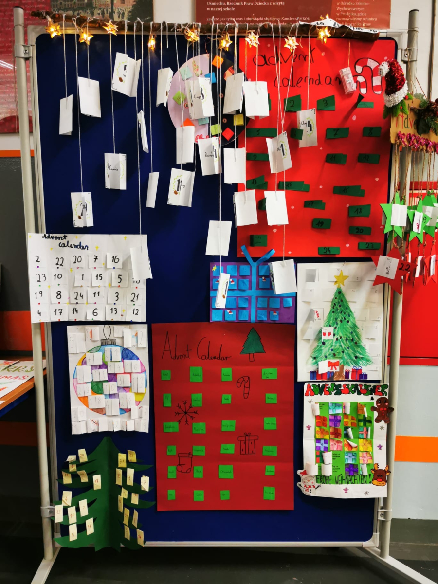 Pozytywne szaleństwo tworzenia kalendarzy adwentowych, a może raczej "die Adventskalender" lub "Advent Calendar" zagościło w grudniu w naszej szkole! Edukacyjnie, z dozą humoru i dobrej zabawy zorganizował je Zespół Nauczycieli Języków Obcych. W ramach konkursu chętni uczniowie mogli stworzyć dowolną techniką kalendarze adwentowe zawierające zwroty świąteczne w języku angielskim lub niemieckim. Twórczość podziwiać można było na wystawach zlokalizowanych na parterze i ostatnim szkolnym piętrze. Jury (i nie tylko) oceniło i doceniło każdą z prac, zadanie wyboru zwycięzców było jednak trudne...