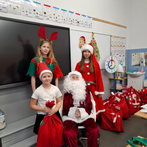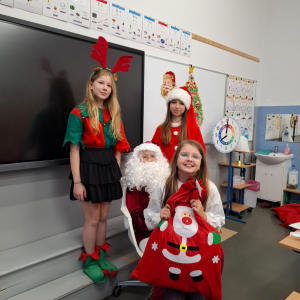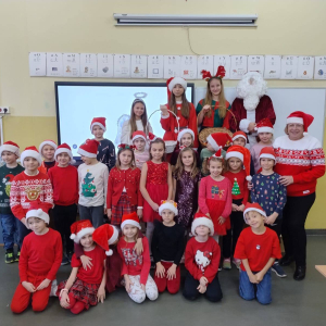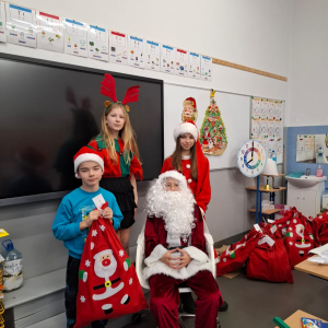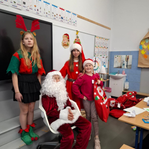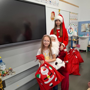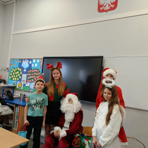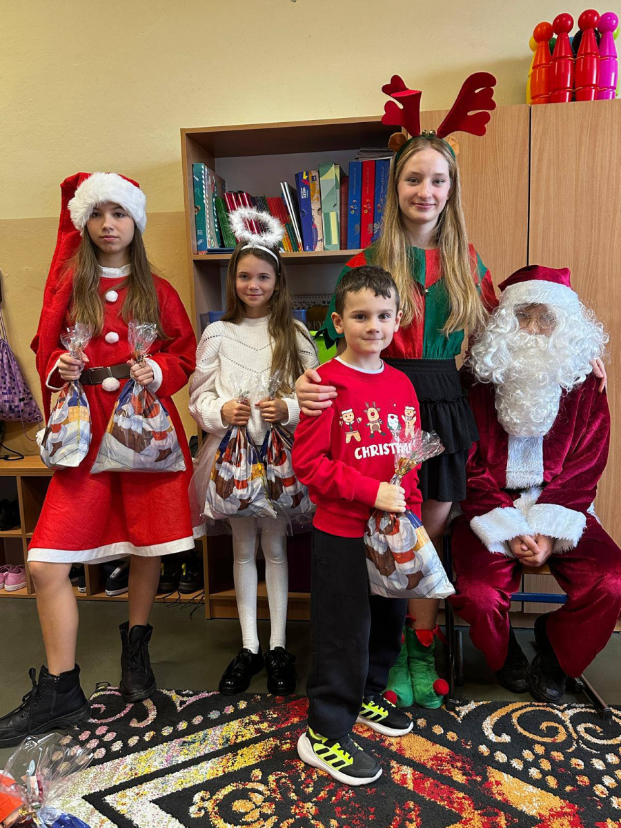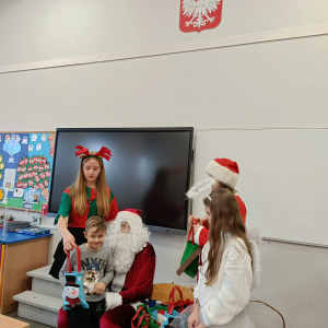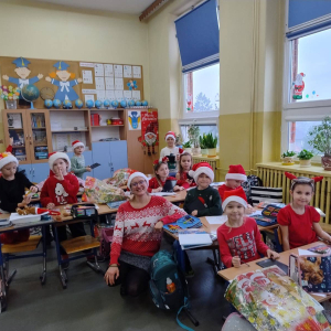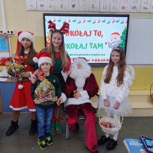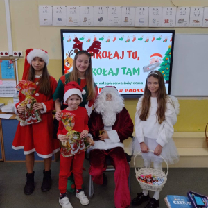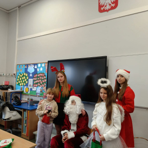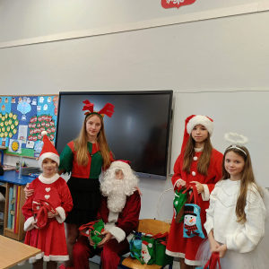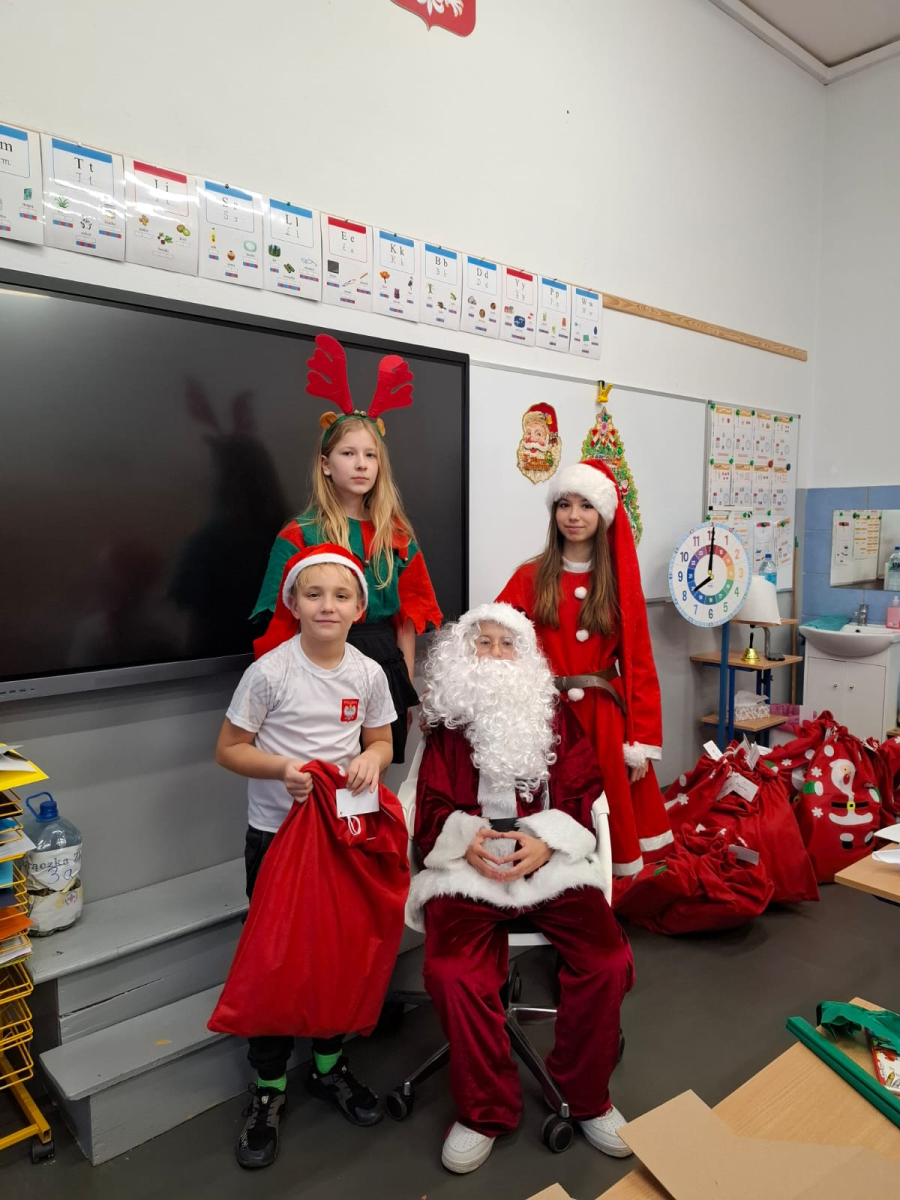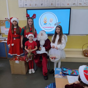 Dzień zakończył się wspólnymi zdjęciami z Mikołajem i jego ekipą. Mikołajki w szkole były pełne uśmiechów, ciepła i wyjątkowej atmosfery, która przypominała, że to czas dobroci, radości i wspólnego przeżywania pięknych chwil.