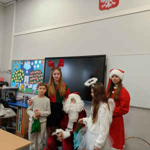 5.12 w naszej szkole obchodziliśmy Mikołajki. To jeden z najbardziej wyczekiwanych dni w całym roku. Już od rana na korytarzach czuć było podniosłą atmosferę – wszędzie pojawiały się czerwone czapki, słychać było dzwoneczki, a uśmiechy uczniów były jeszcze szersze niż zwykle.