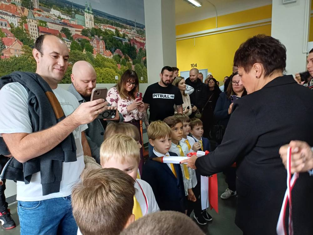 A, że częścią szkolnej rodziny są także rodzice i opiekunowie oraz nauczyciele także oni uroczyście przyrzekali doceniać w dziecku to, co najlepsze, chwalić wszystkie wysiłki, osiągnięcia, słuchać z uwagą, co komunikuje, rozwijać jego umysł tak, by chciało wiedzieć jak najwięcej.