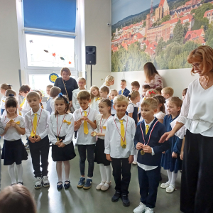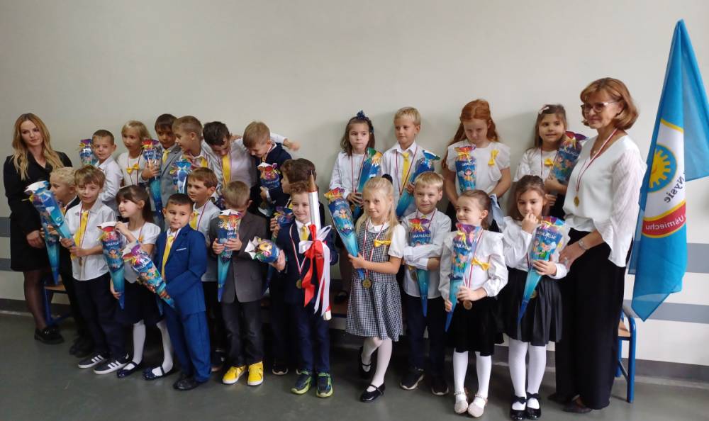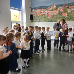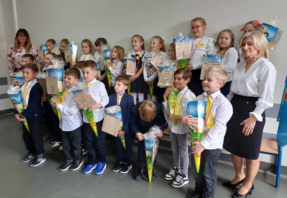 Każdy uczeń otrzymał drobny upominek, który stanie się pamiątką radosnej ceremonii. Wszyscy życzymy Pierwszoklasistom sukcesów, rozwijania talentów i radości z chwil spędzonych w szkole.