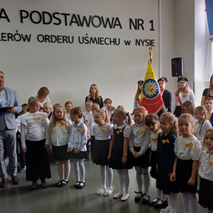 14 pażdziernika, w dniu niezwykle ważnym dla całego środowiska dydaktycznego, najmłodsi członkowie społeczności szkolnej zostali pasowani przy użyciu wielkiego, zaczarowanego ołówka, na pełnoprawnych Uczniów Szkoły Podstawowej nr 1 im. Kawalerów Orderu Uśmiechu w Nysie.