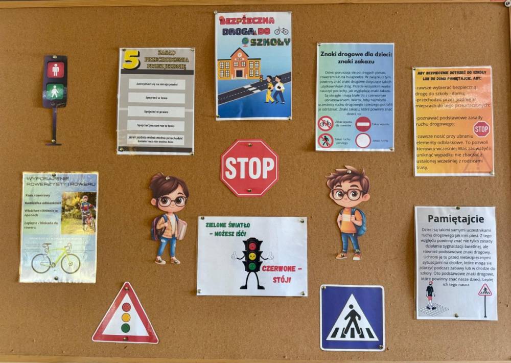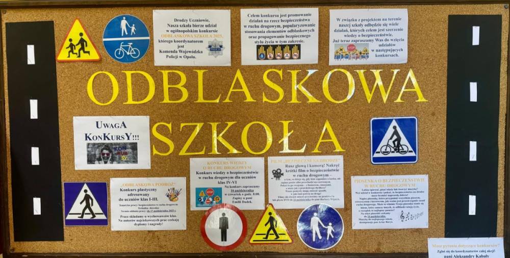 Do edukowania o bezpieczeństwie w ruchu drogowych ze szczególnym uwzględnieniem roli oznaczeń odblaskowych aktywnie włączyła się także grupa świetlicowa - efekty podkreślamy w formie zdjęć. A spacerując szkolnymi korytarzami warto poszerzyć wiedzę zerkając na tematyczne gazetki.