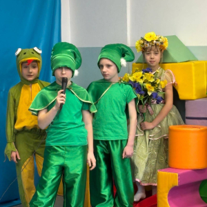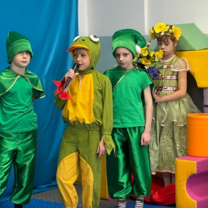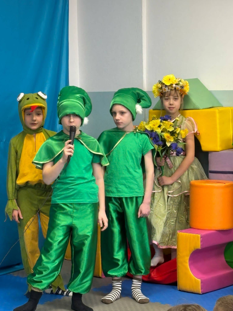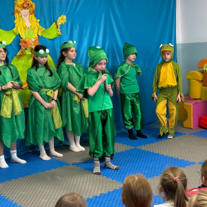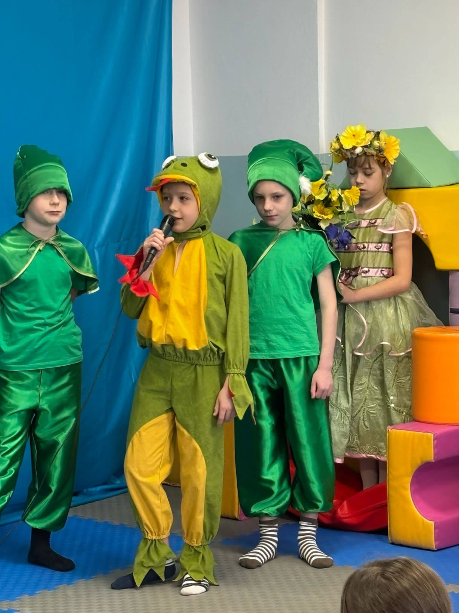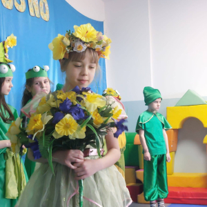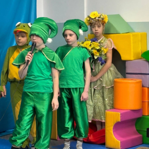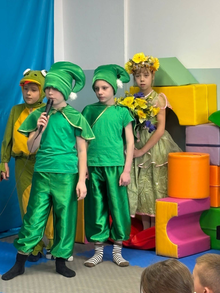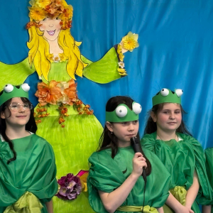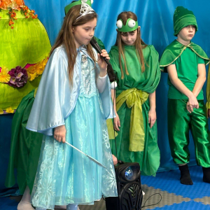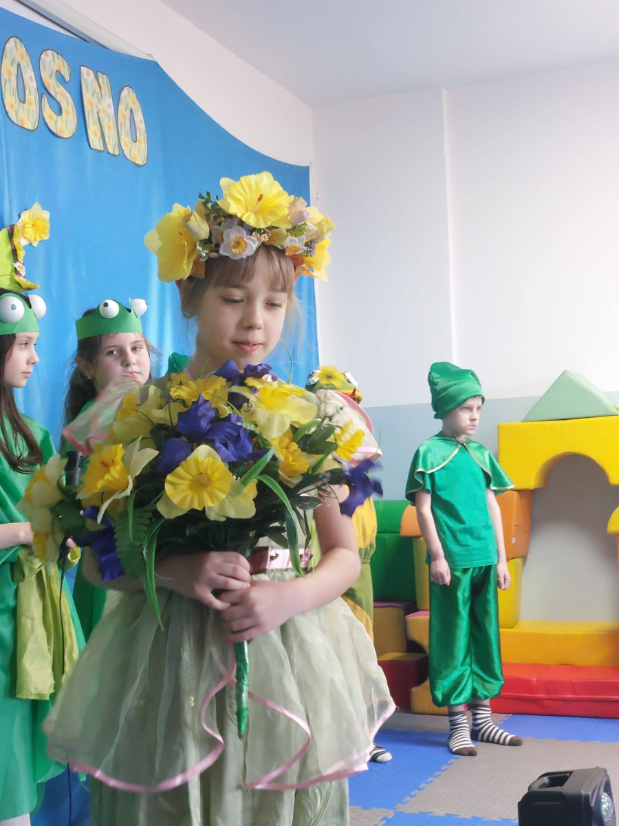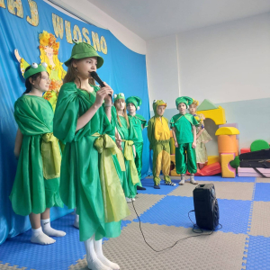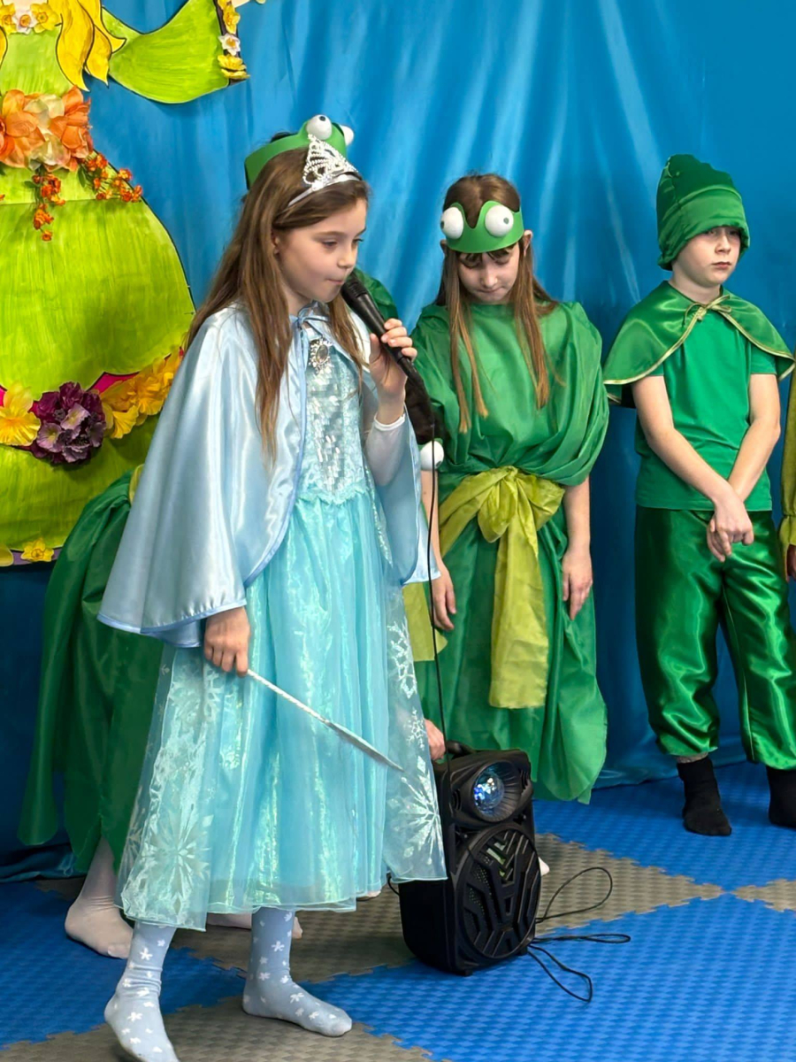 Scena wypełniła się zielenią, kwiatami i uśmiechem. Szczególną sympatię wzbudziły urocze „żabki”, które swoim występem dodały całości lekkości i humoru. Nasi artyści zachwycili pięknymi strojami oraz zaangażowaniem, a wspólnie wykonana piosenka jeszcze bardziej podkreśliła radosny charakter przedstawienia.