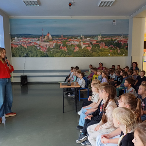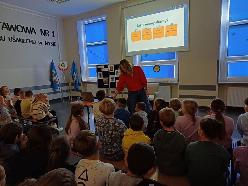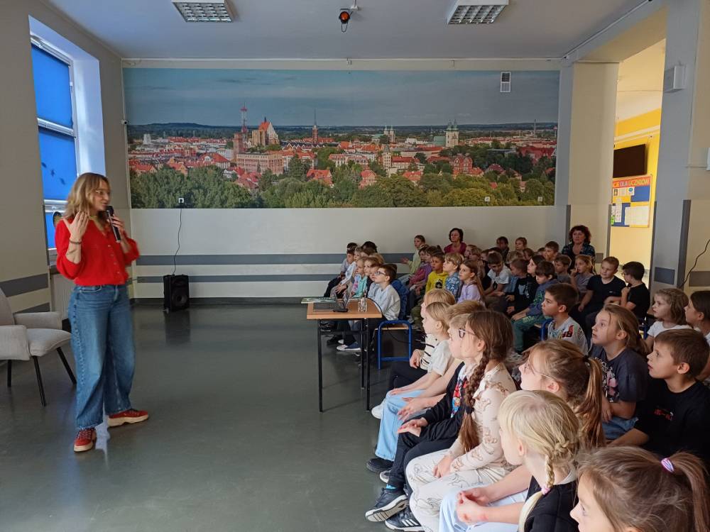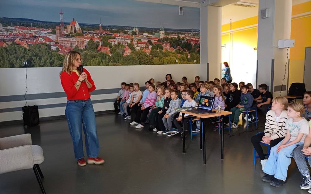Miesiąc Bibliotek Szkolnych trwa, więc jest to idealny czas, aby spotkać się z autorką książek. Dzięki Narodowemu Programowi Rozwoju Czytelnictwa w środę 15 października mieliśmy wyjątkową przyjemność gościć u nas Małgorzatę Szumską - pisarkę, aktorkę teatru lalek, podróżniczkę, influencerkę, prezeskę Kopalni Złota w Złotym Stoku, właścicielkę pensjonatu Złoty Jar.