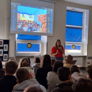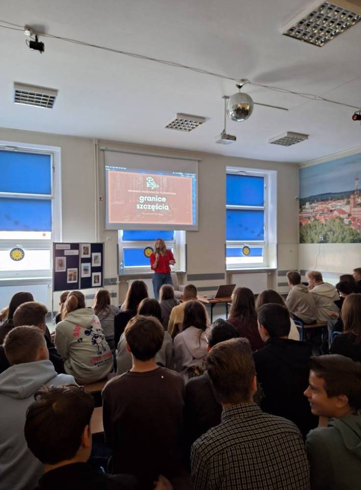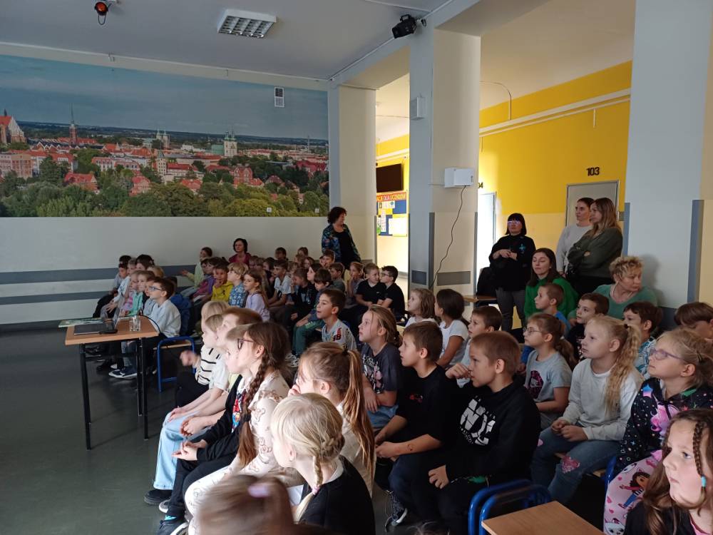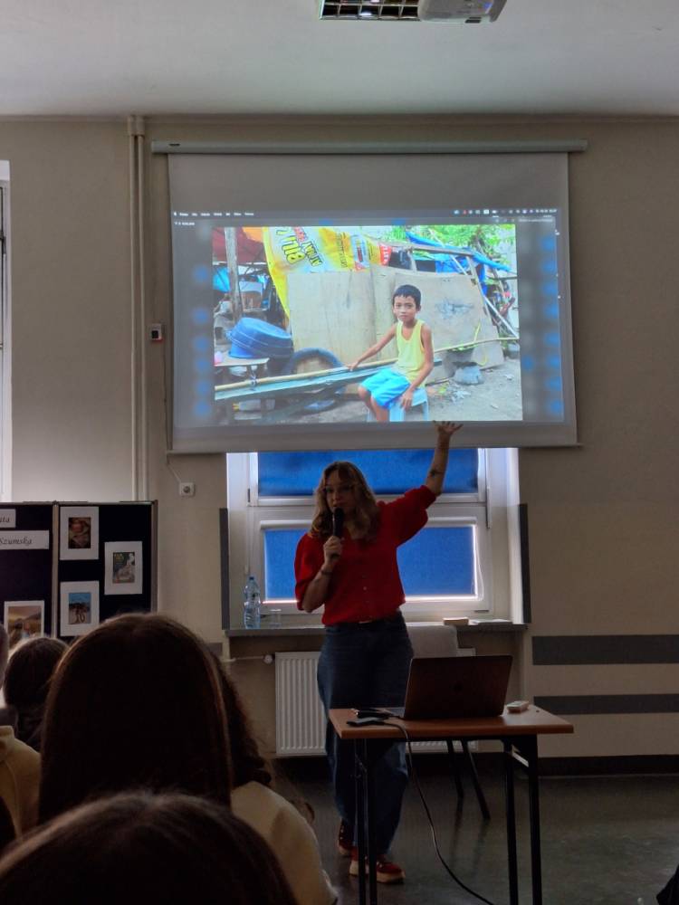 Uczniowie klas 7 i 8 wysłuchali opowieści o obliczach tajfunu na Filipinach, mądrym pomaganiu, realizacji marzeń i sile odwagi.