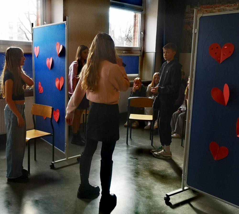 Działała więc poczta walentynkowa, a także odbyła się "Randka w ciemno"- hit wśród starszych klas. Było miło i zabawnie, a czy z nowo powstałych par coś będzie? Czas pokaże.