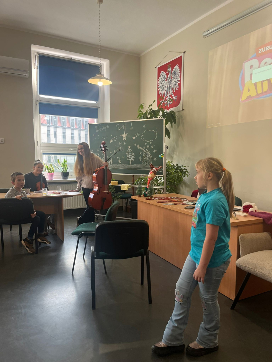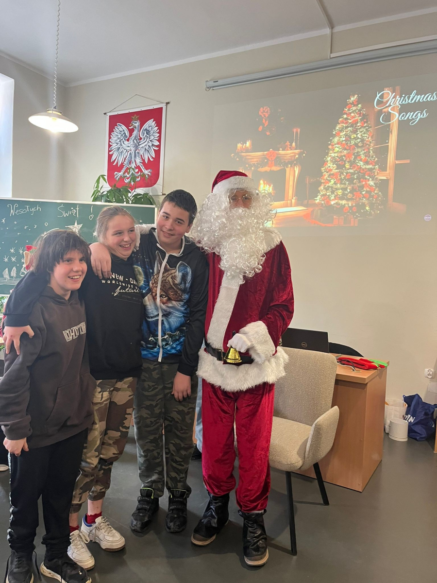 Na uczestników czekał słodki poczęstunek oraz wspólne sensoryczne warsztaty świąteczne. Czas umilał nam występ naszych uczennic grających kolędy na skrzypcach i wiolonczeli, wspólne kolędowanie oraz udział w szkolnych jasełkach. Na zakończenie Mikołaj wręczył prezenty, a wszyscy uczniowie opuścili spotkanie z uśmiechami i w świątecznym nastroju.