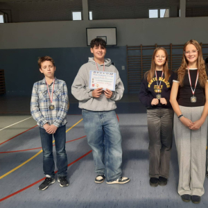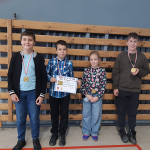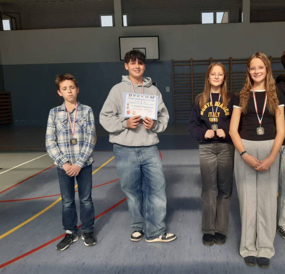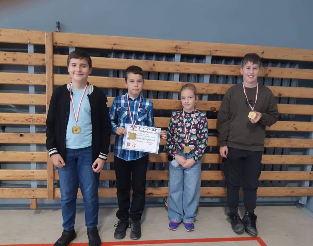 11.10 młodsi szachiści SP1: Kalina Broszkiewicz, Franciszek Gąsior, Grzegorz Jakus i Oskar Błaszczyk w pięknym stylu wywalczyli złoty medal, wygrywając pewnie z każdą drużyną.