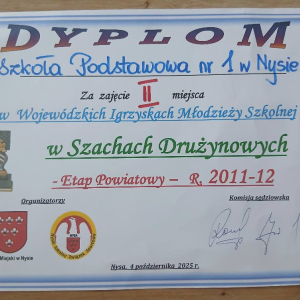 04.10 drużyna SP1 w składzie: Kornelia i Nikola Starczyńskie, Michał Podborączyński oraz Jakub Dżendżera do końca walczyła o zwycięstwo. Niestety ostatnia partia - bardzo emocjonująca i wyrównana - zadecydowała o tym, że ostatecznie zajęliśmy II miejsce, co i tak jest wielkim sukcesem całej drużyny.
