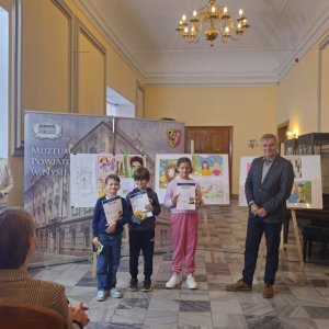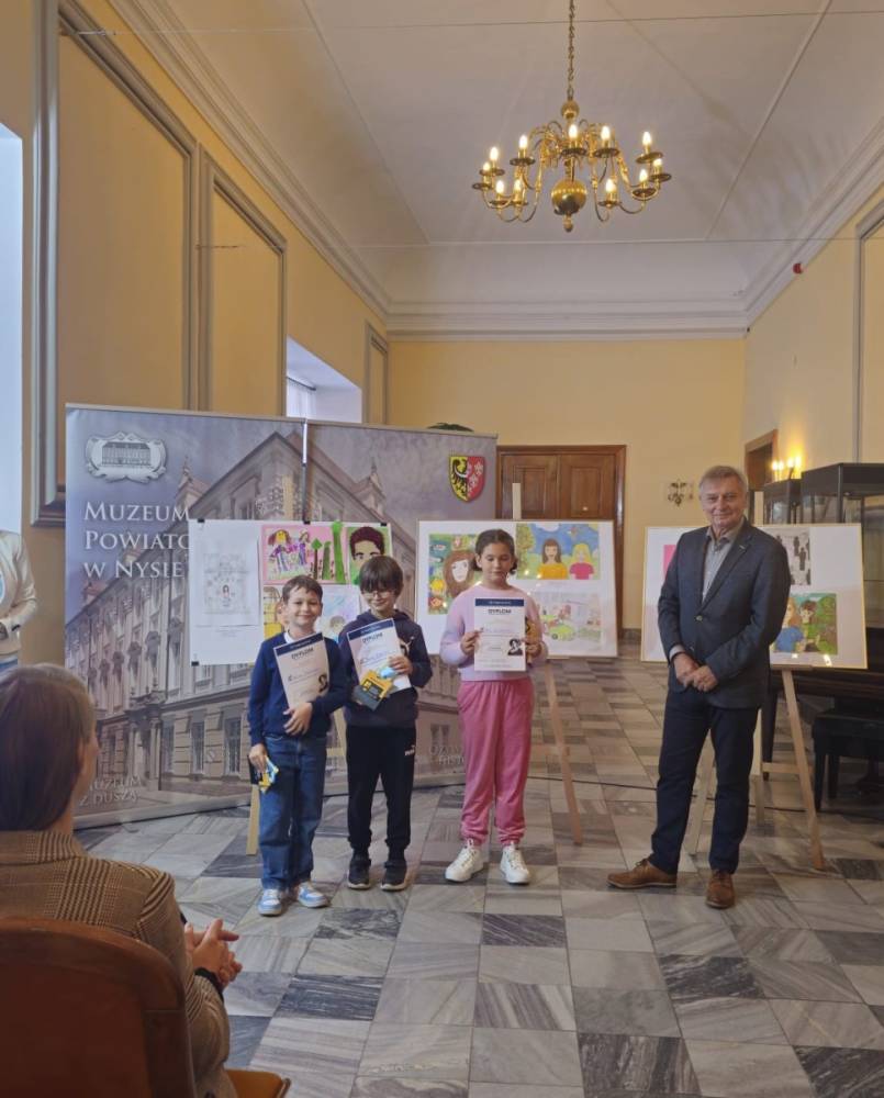 29 września w Muzeum Powiatowym w Nysie odbyła się gala wręczenia nagród w konkursie plastycznym "Ja i inni". Wśród nagrodzonych znaleźli się także uczniowie naszej szkoły. Wyróżnienia w swoich kategoriach wiekowych otrzymali Jakub Iwańczyk (kl. 2a), Jakub Cisowski (kl. 2a) i Marta Kaniewska (kl. 5a), natomiast Anastazja Hatzl (kl. 3a) i Kaja Apostel (kl. 6b) zajęły III miejsce.