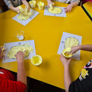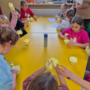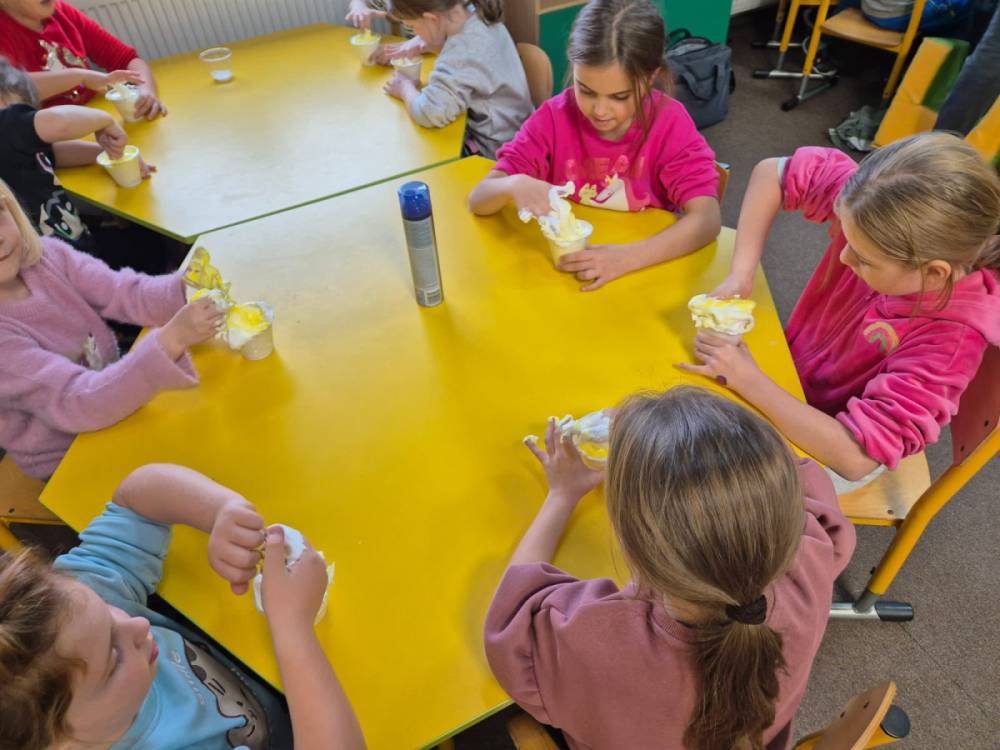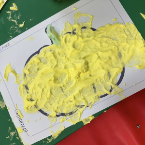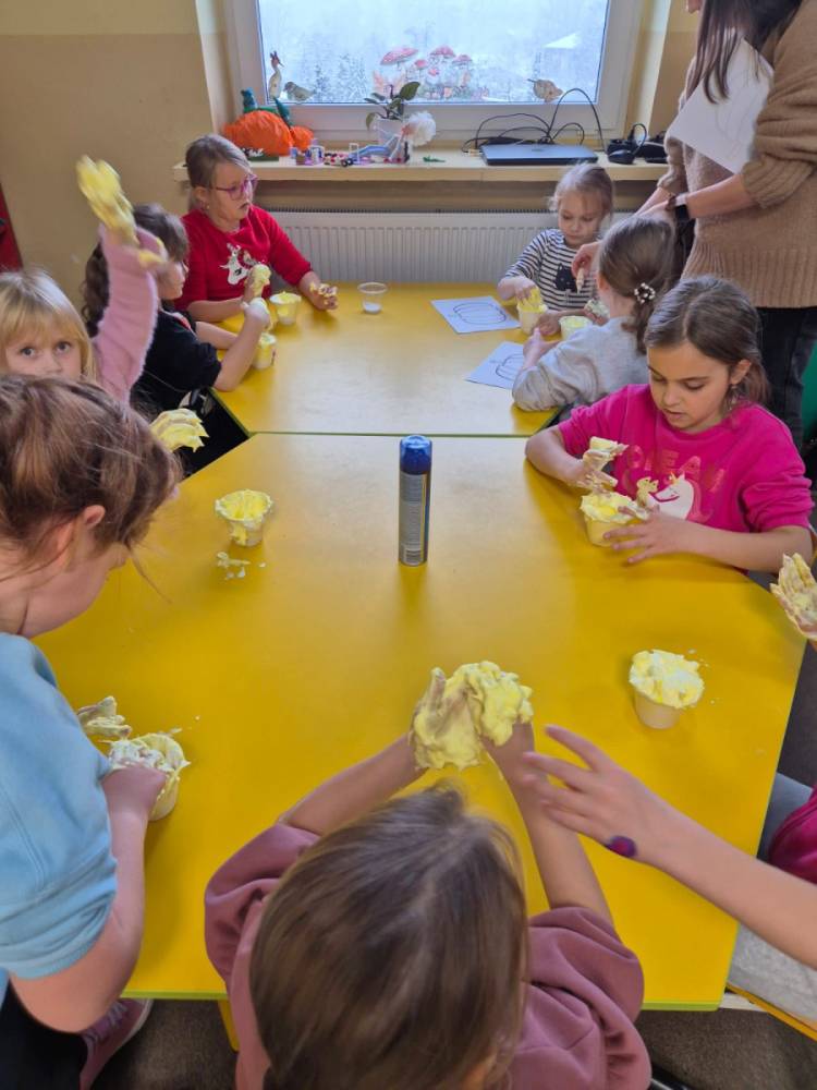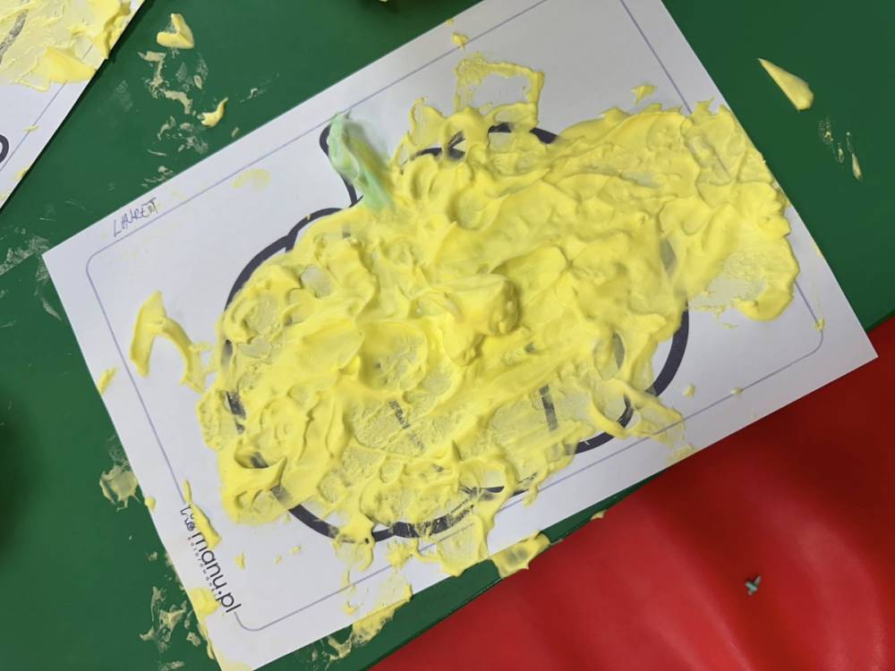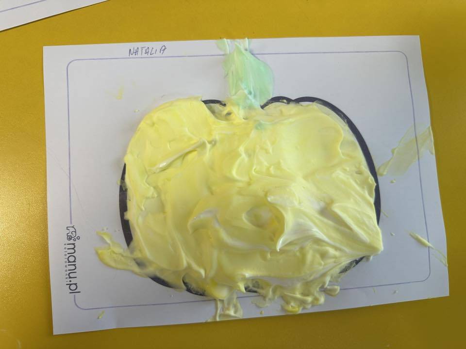 26.11 dzieci tworzyły puchnące dynie z pianki do golenia, kleju i barwnika. Było mnóstwo zabawy, mieszania, ugniatania i sensorycznego odkrywania!